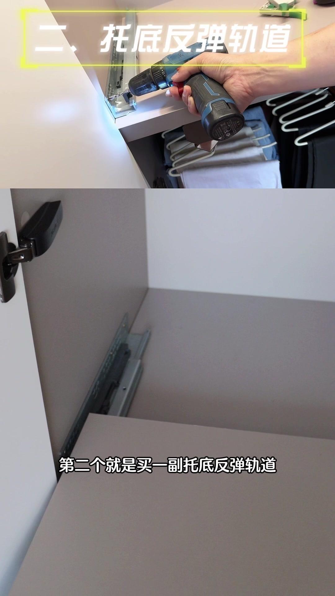 2️⃣安装轨道:买一副托底反弹轨道,承托力强,熨衣服时完全不会晃,安装在木板下方很稳。