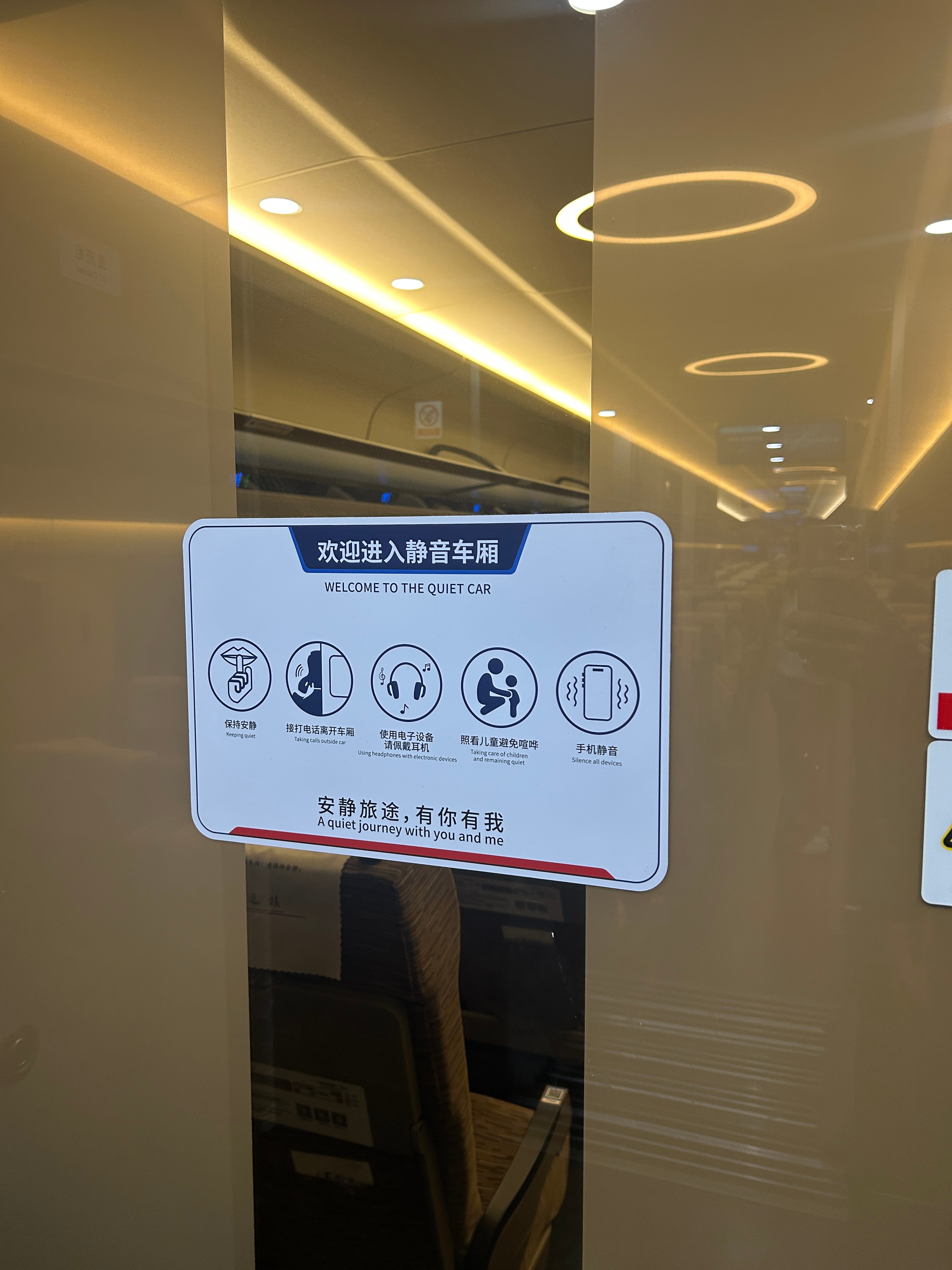 高铁这个静音车厢真挺好的,非常非常之安静,有人吵就会有列车员过来提醒,所以如果你