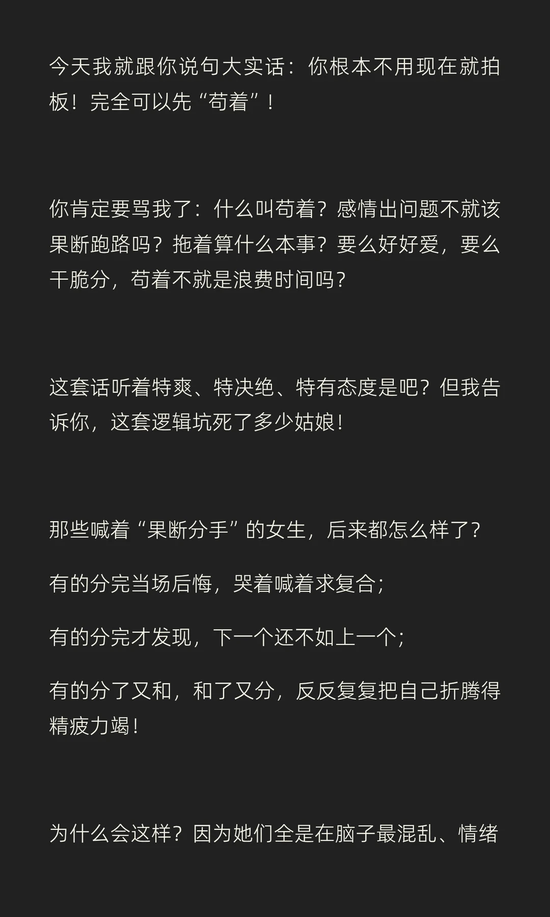 别逼自己立刻分手!先“苟着”才是清醒大女