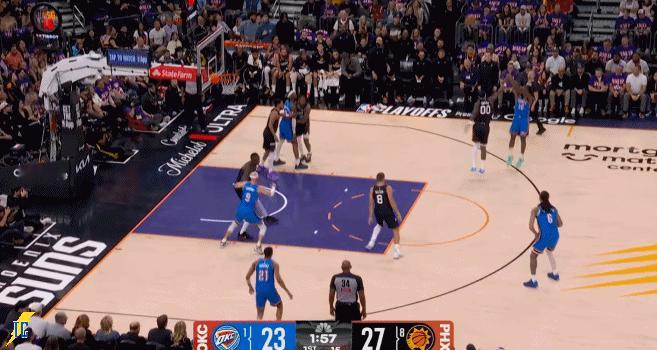 阿伦投进复出的首记三分,卡森华莱士的三分没续上,好在阿龙维金斯拼抢后卡鲁索捡到球上篮得手,随后亚历山大的持球三分命中,阿龙维金斯突分助攻卡森的三分也有,雷霆反超太阳!