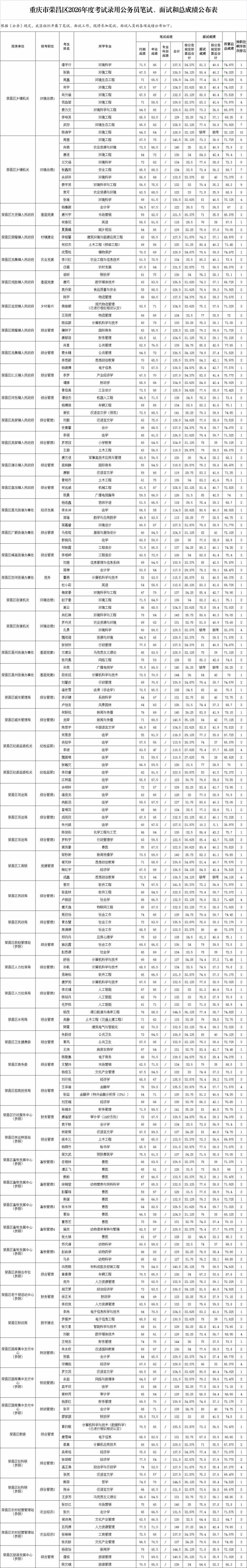 速查!重庆荣昌区公务员考试总成绩公布 📌 发布单位:重庆市荣昌区人力资源和社