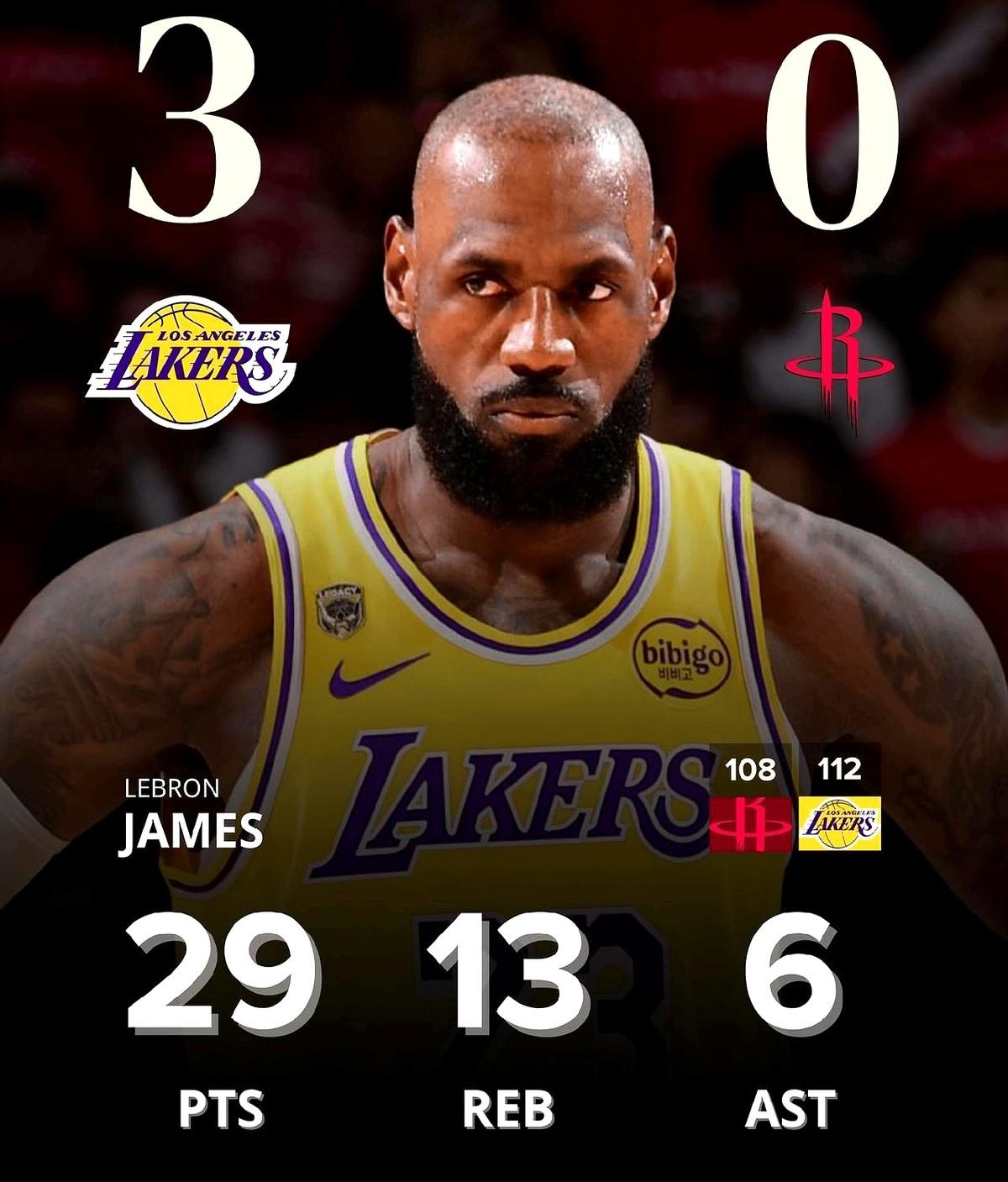 结果老詹太猛了!带着一群角色球员,哐哐哐直接干了火箭一个3-0!G3加时赛,詹姆斯一个人就砍下29分13个篮板,硬生生把赛点拿到手。
