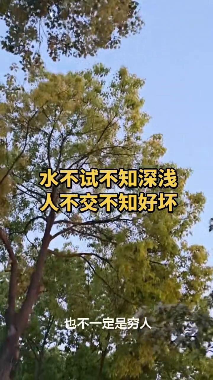水不试不知深浅,人不交不知好坏。 烧香的人不一定是善人,乞讨的也不一定是穷人,顺着你的不一定是好人,穿着衣服的也不一定是人。做事不要只看外表,家财万贯也买不了太阳下山,身无分文也不代表日后就没有江山。水不试不知深浅,人不交不知好坏。