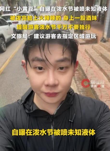 4月14日,一个百万粉丝的博主被围住滋水,脸上火辣辣的疼,干了之后一股酒味。水里掺了什么?谁知道。