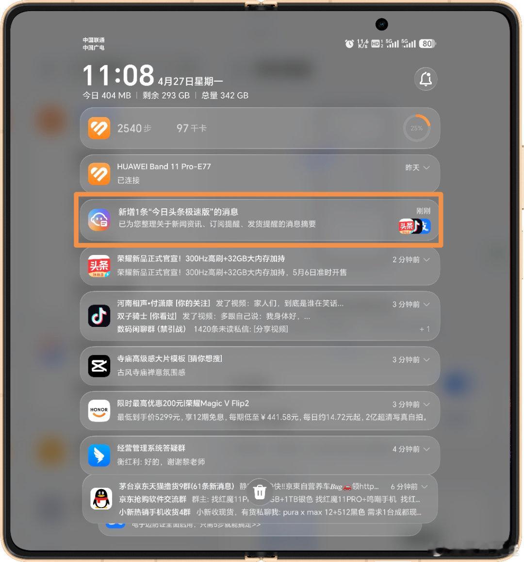 荣耀MagicV6 YOYO又进化了这次系统更新后YOYO的消息摘要功能真的戳中痛点,不用再逐条翻几十条群聊、公众号推送,AI会自动把重点信息汇总整理,核心内容一目了然,省了大把无效刷消息的时间。搭配7.95英寸大屏,摘要和原应用可以同屏显示,确认信息不用来回切换。机身只有219g、8.75mm厚,揣在兜里和普通直板机没区别,7150mAh青海湖电池重度用一整天也没压力。折叠屏的AI体验终于不止是噱头了。荣耀MagicV6 magicos月月新陆毅因嘴巴紫去医院做了大检查