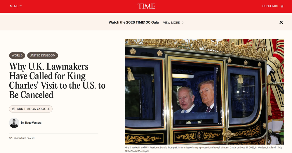 《时代》杂志报道,英国自由民主党29名议员联合呼吁首相斯塔默,以“美国持续发动战争且屡屡贬低英国等盟友,以及在其开战决策中甚至未被征询意见”为由,取消国王的访美计划。该党领袖埃德·戴维称,“不能再让这个不可靠、危害国家安全的(美国)总统继续侮辱我们的国家了”。
