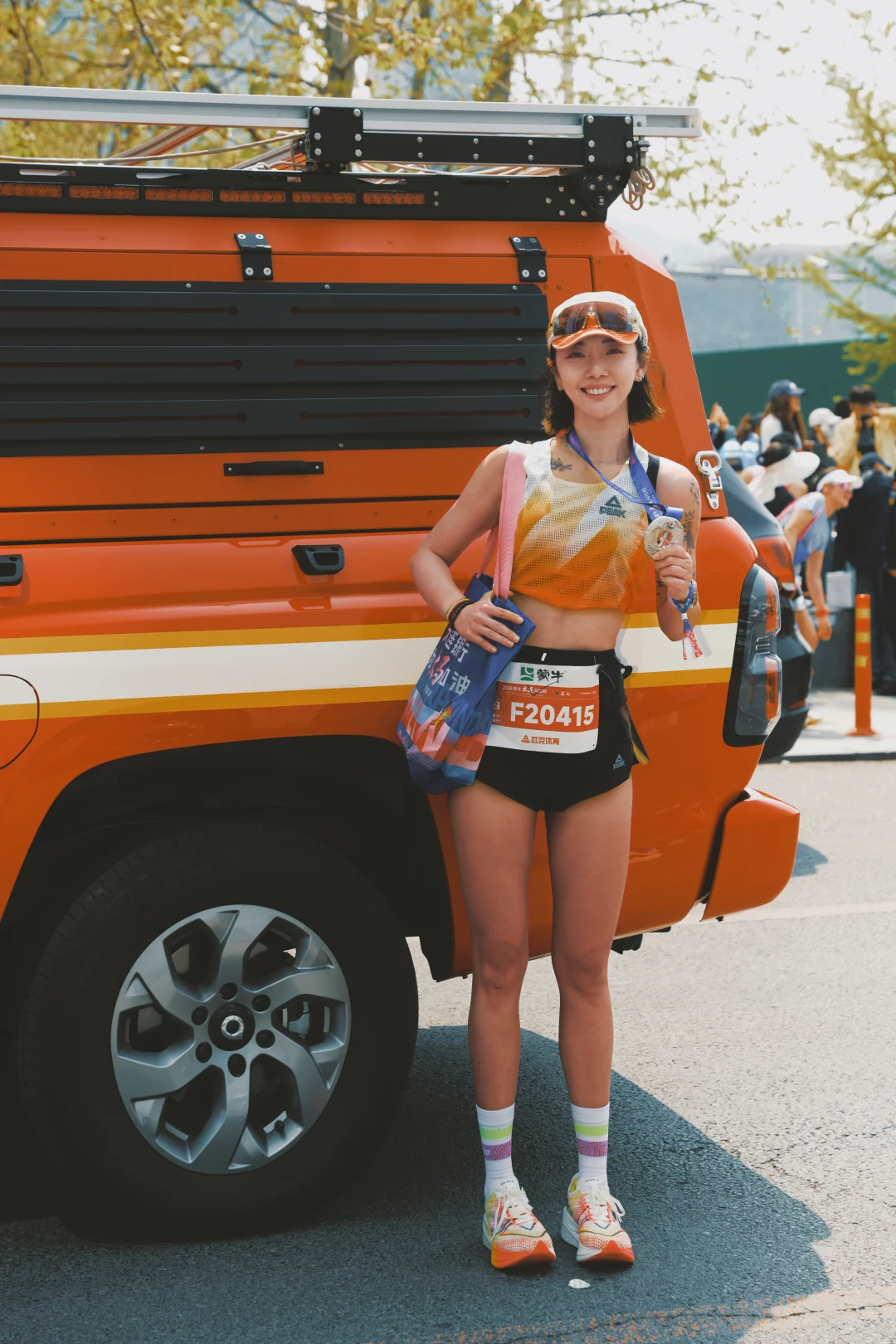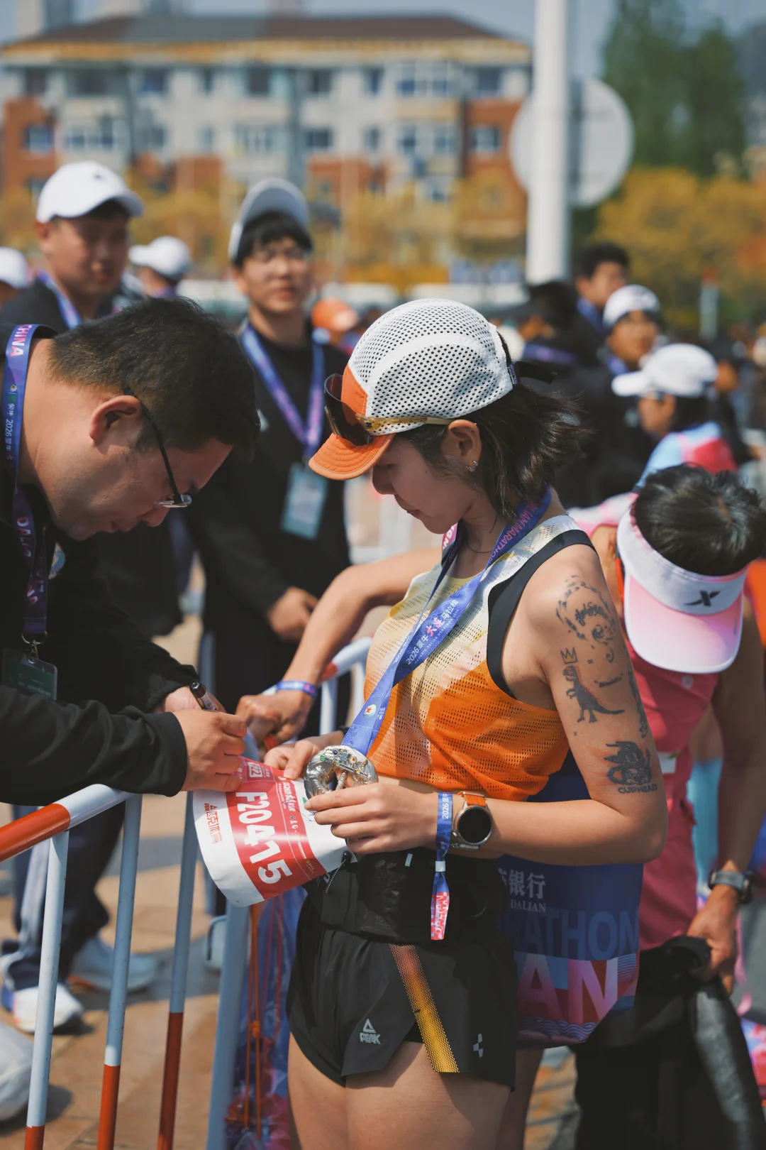冲线后的接过精心设计,带有地域特色的奖牌,慢慢走在人群里。手机震动,收到成绩推送:1:59:21。