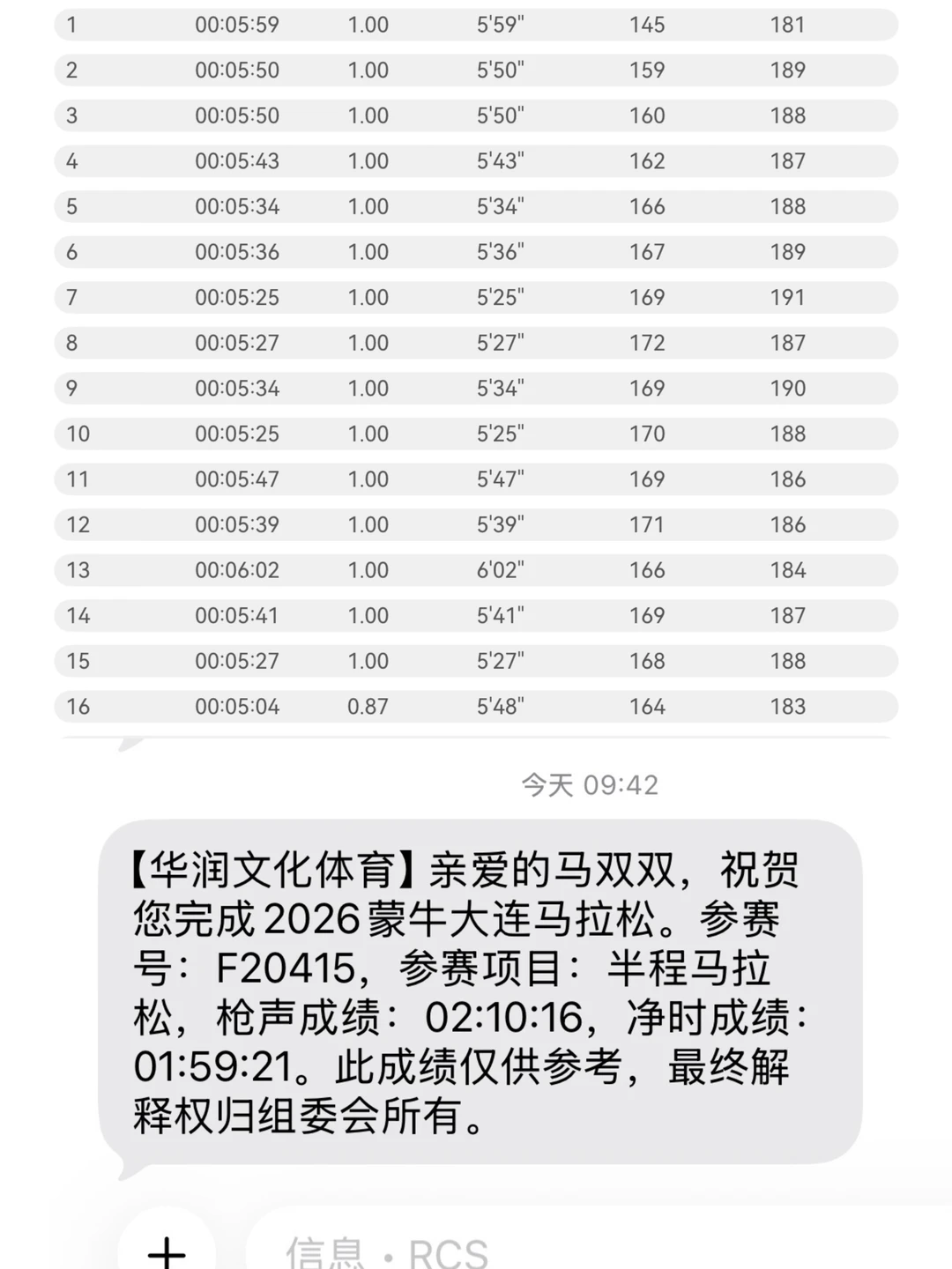 [哭惹R]这个分毫之间的成绩,也是这21公里每一公里扣扣搜搜节约出来。喝水时间,自拍时间,甚至调整呼吸的时间。大连的大风和大上坡真的不是那么快乐的。