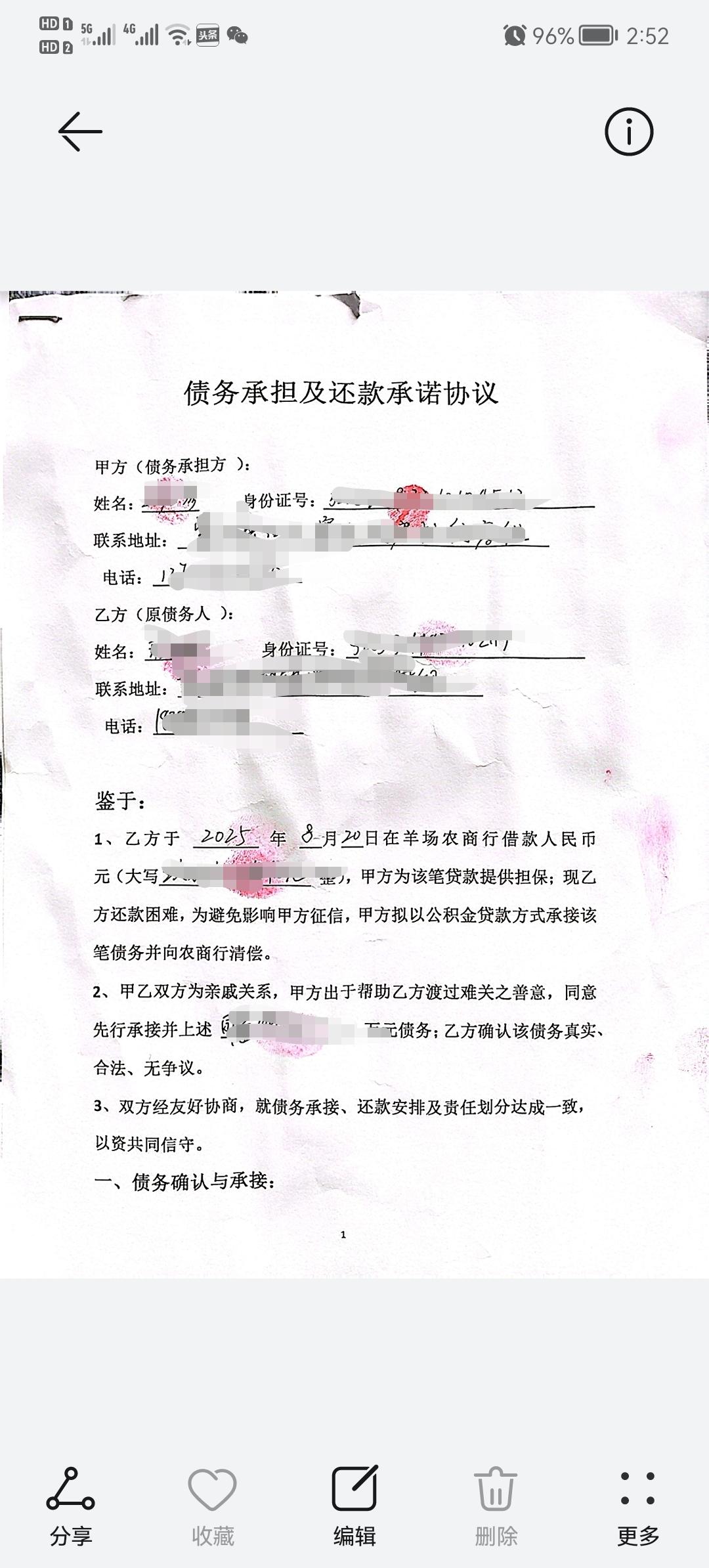 可能是如今各大行中的农商行好贷款些,也可能是当初的放贷员不想因了自己的放贷成了坏账烂账影响到自己的前途,所以即便看到我三年前信用卡有过几次逾期、征信有点花的情况下,依然是积极向上级沟通、反馈,把转贷手续办下来。当然了,为免以后这笔账我自己来扛,去农商行办理转贷业务时便叫上朋友儿子前往签订承诺还款协议书。