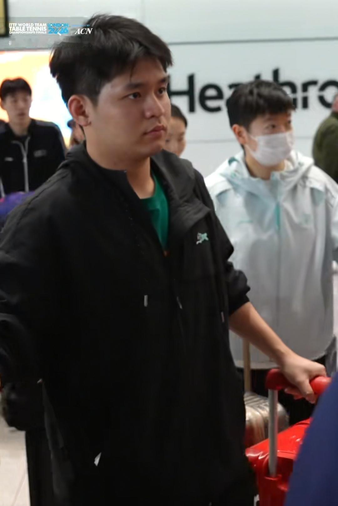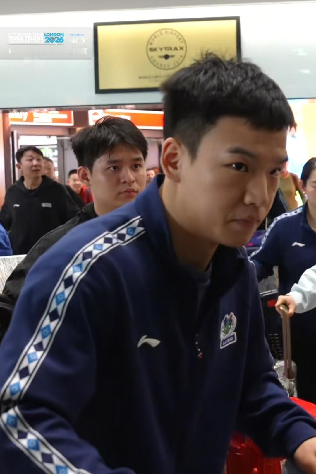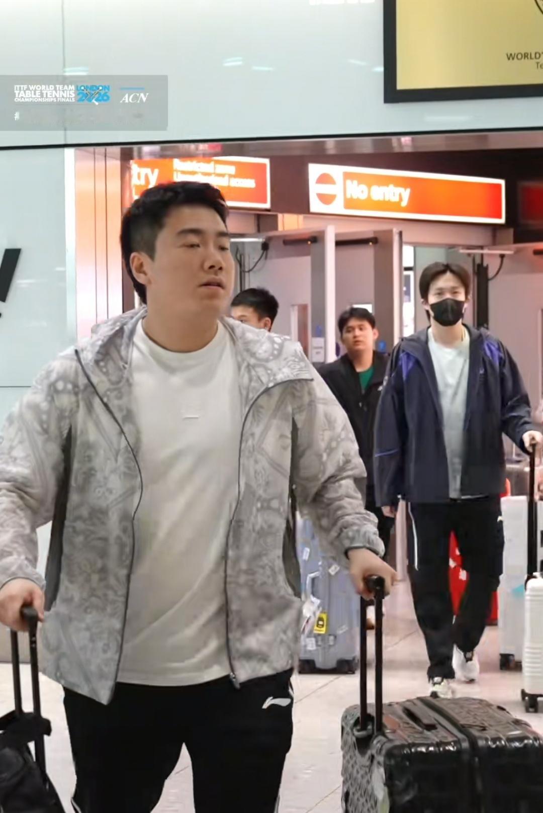 伦敦机场举牌的小姐姐是不是也特别养眼,国乒团队男队在前,女队紧跟其后,最后面还有七号满格护行,一看就是一个非常团结友爱的国乒大家庭。