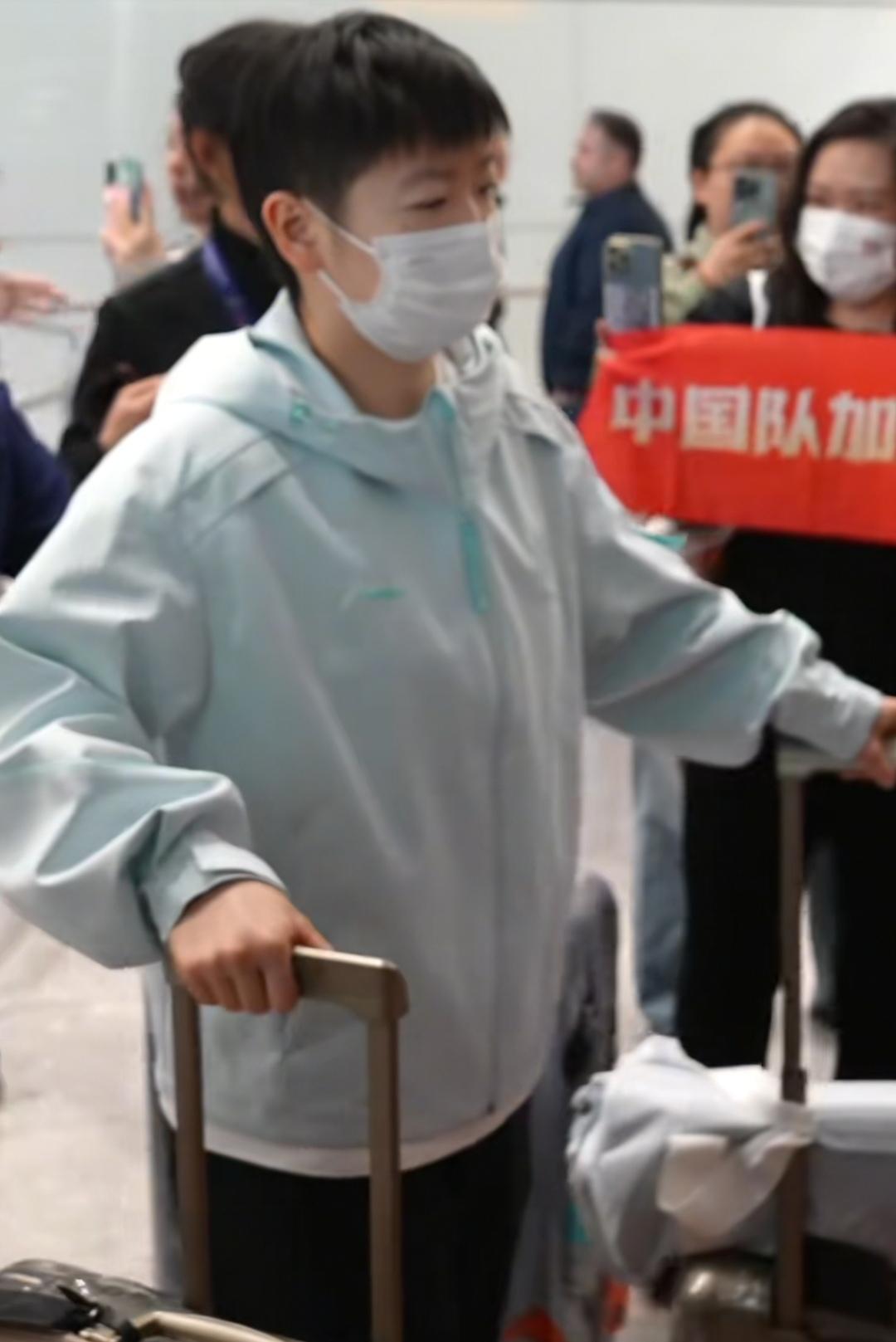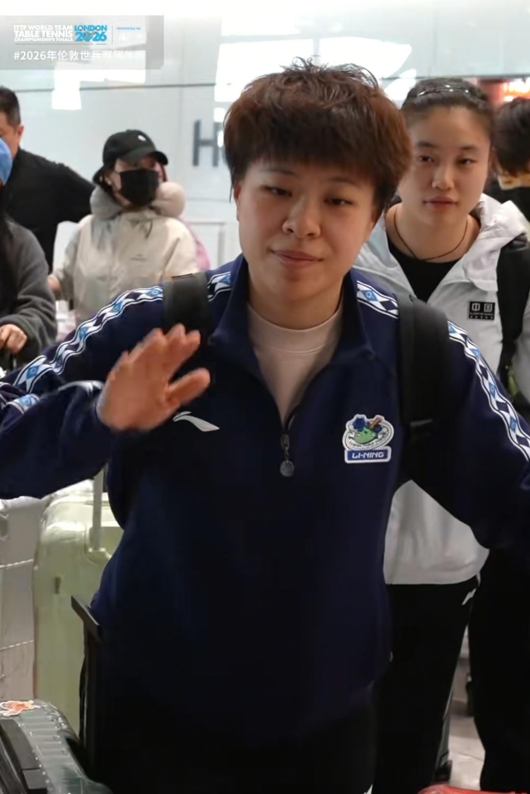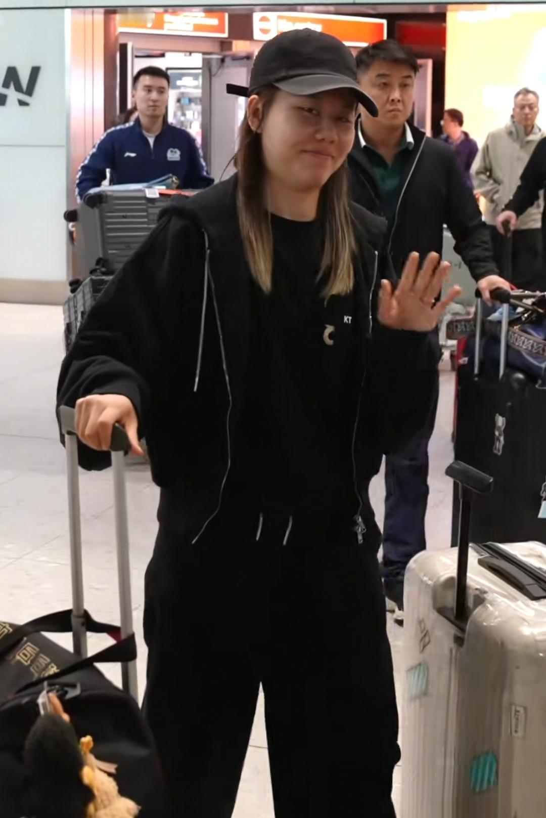 伦敦机场举牌的小姐姐是不是也特别养眼,国乒团队男队在前,女队紧跟其后,最后面还有七号满格护行,一看就是一个非常团结友爱的国乒大家庭。