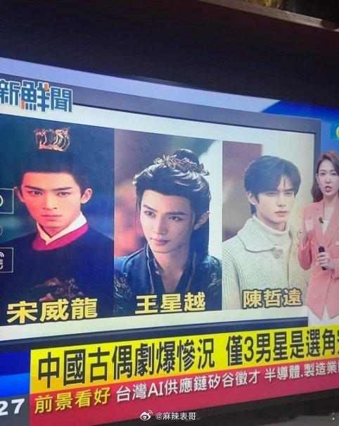 台媒断章取义的报道了昨日狐厂发文,称中国古偶剧爆惨况,仅宋威龙、王星越、陈哲远三