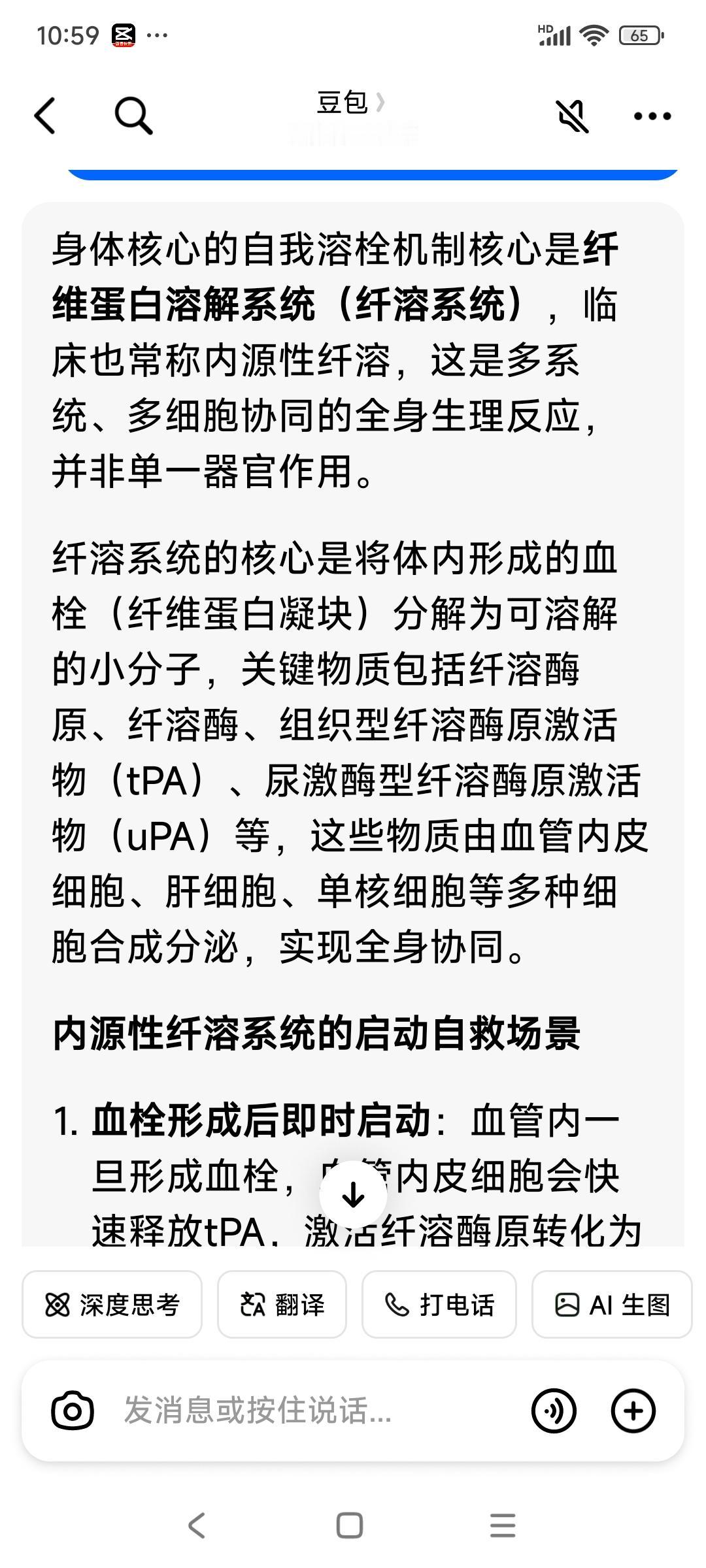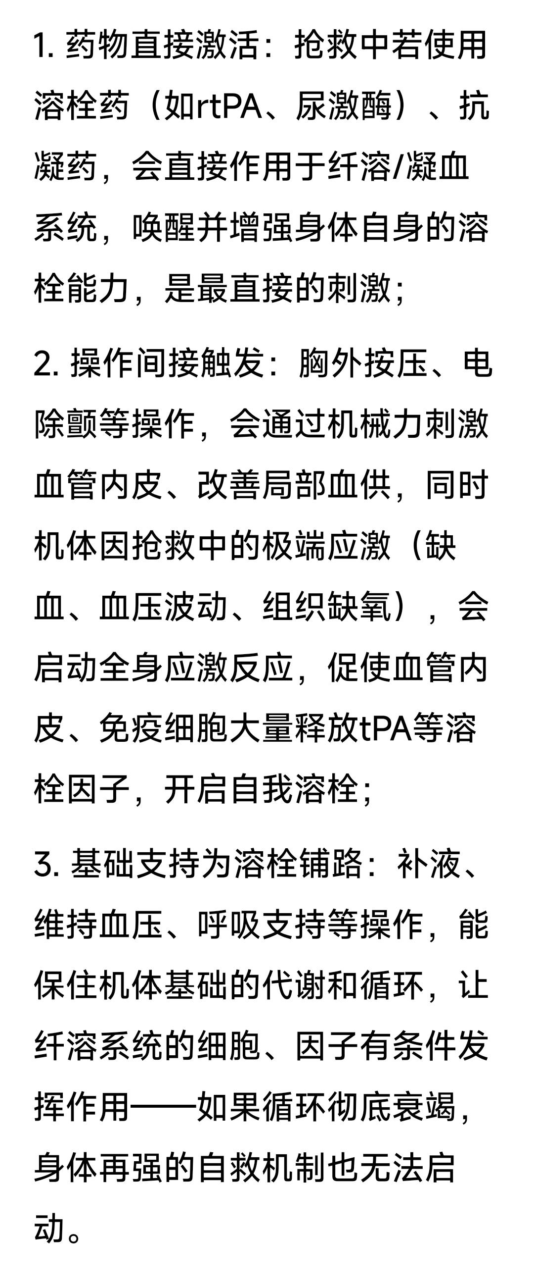 (身体里原来有内源性纤溶系统,可以合力溶解血栓。是新鲜的、突发的血栓不是板块)