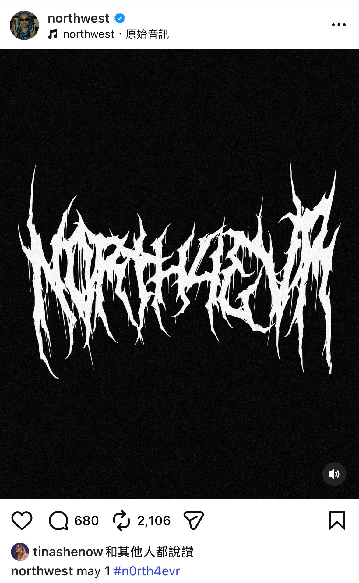 North West 出道EP『N0rth4evr』封面公开,共收录6首曲目,5月1日正式发行: