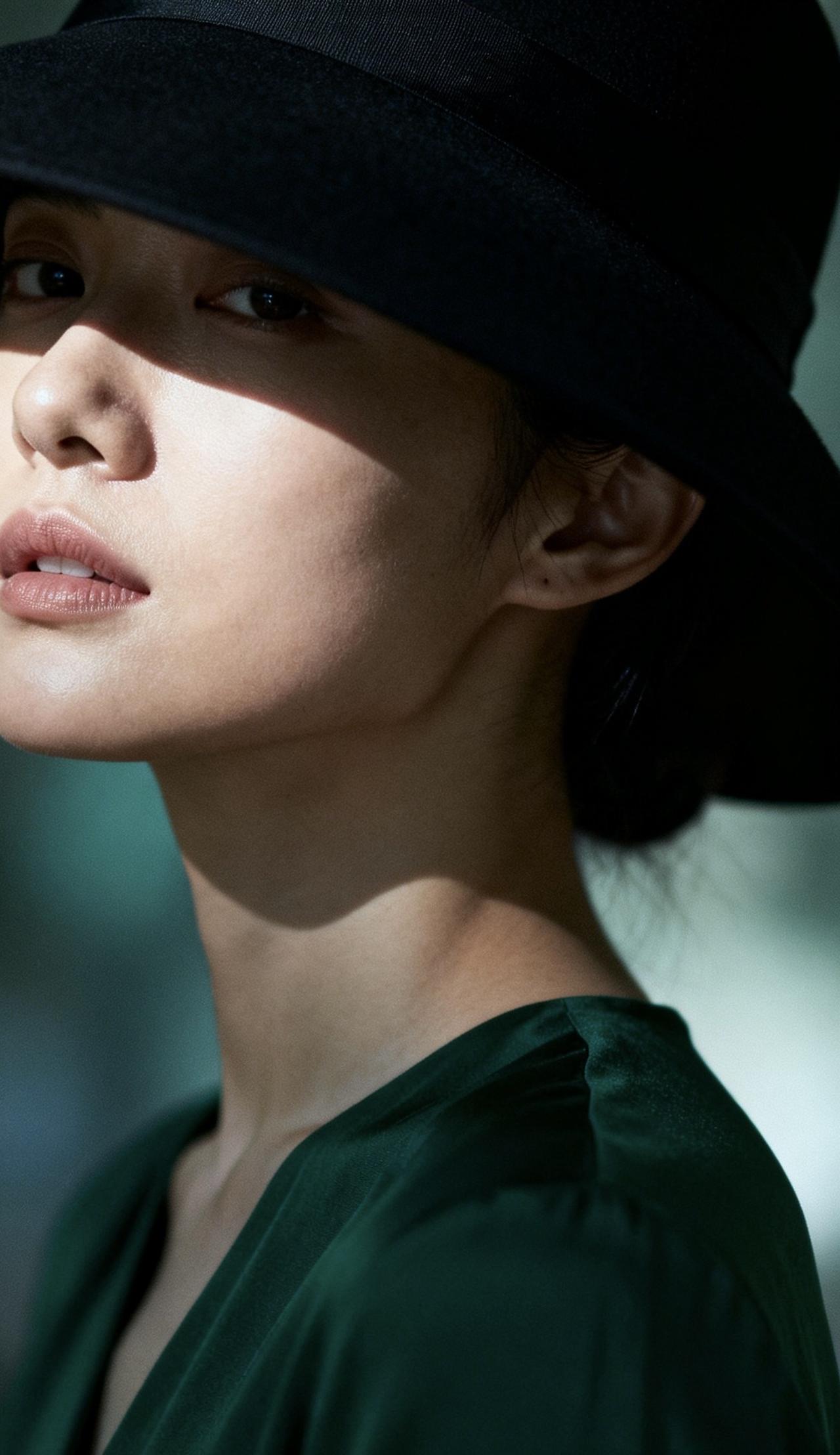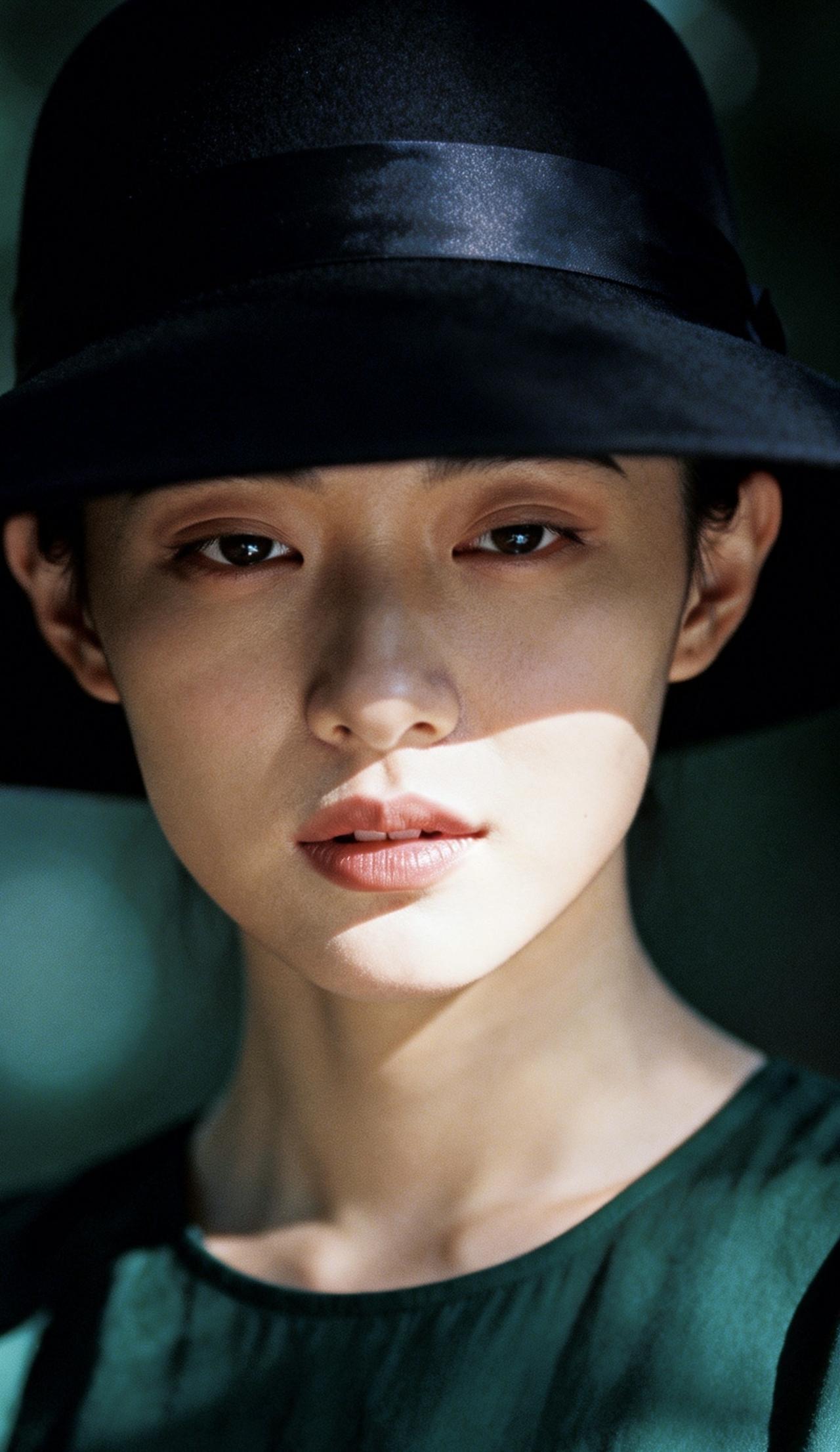精美壁纸(718)🌈 📝特写镜头聚焦中国年轻女生,戴着黑色宽檐帽,帽檐遮住双