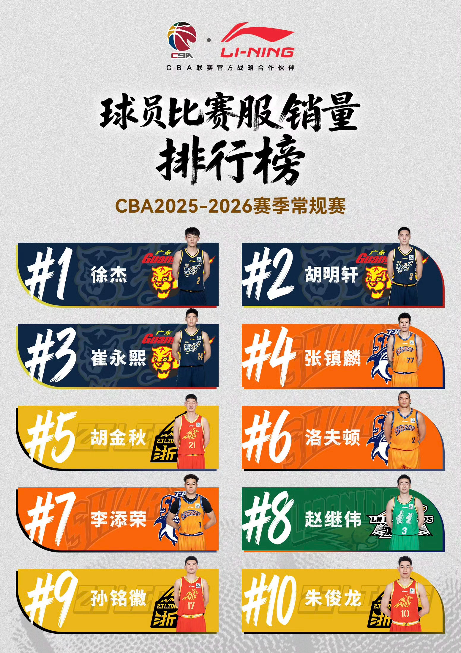 李宁公布CBA本赛季球衣销量排行榜上海男篮球衣销量排第二张镇麟球衣销量排第四洛夫