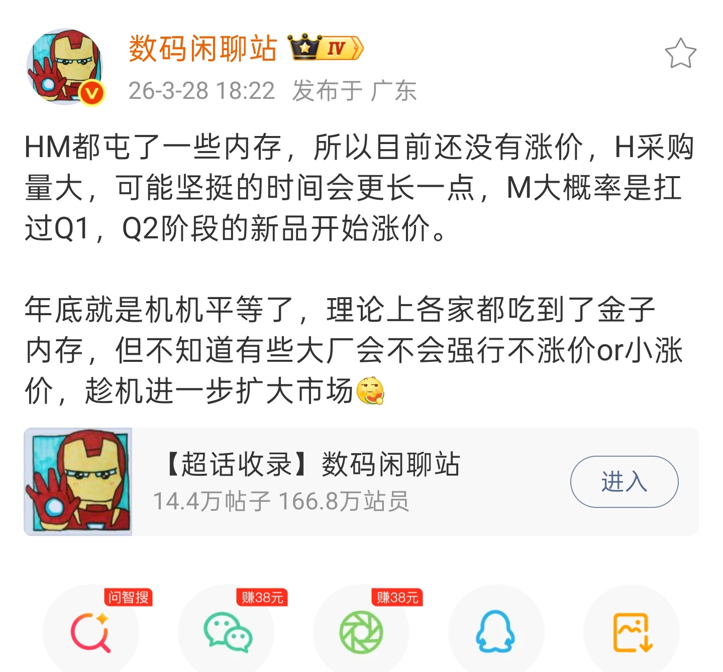 数码闲聊站 内存大幅涨价为何旗舰机型还在硬推LPDDR6?手机内存涨价是短期供需失衡导致,AI服务器抢占DRAM产能,LPDDR5X等手机内存产能缩减、价格攀升。而厂商硬推LPDDR6是长期战略刚需:其一,端侧AI对内存带宽、能效要求极高,LPDDR6带宽提升30%-50%,功耗降低20%,能完美适配AI运行需求;其二,新一代旗舰芯片原生绑定LPDDR6,是旗舰机标配,不跟进则失去高端市场竞争力;其三,LPDDR6长期产能扩容后,单位成本会逐步下降,还能提升产品溢价。短期成本上涨,换来的是长期体验与产业布局优势。