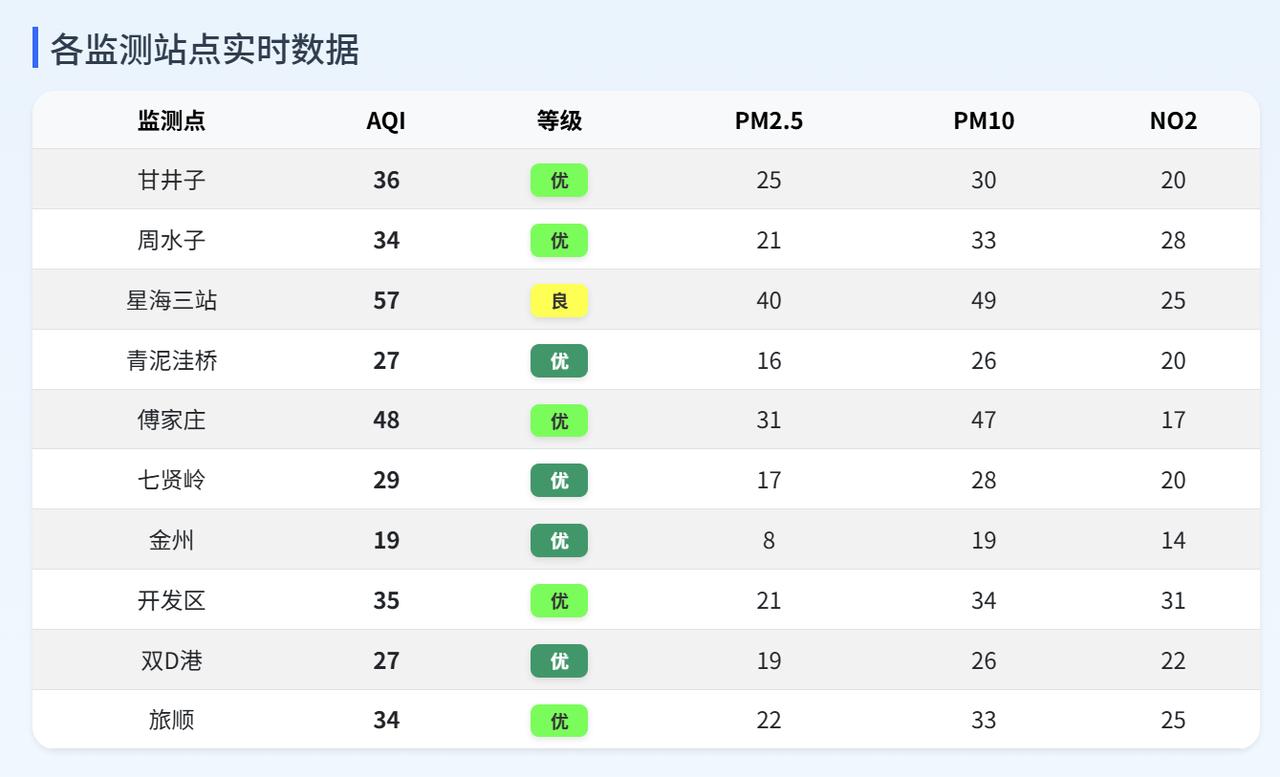 早间6:00市区天气晴,气温12.3度,相对湿度54%,吹偏南风,目前大连大部分地区空气质量优异。