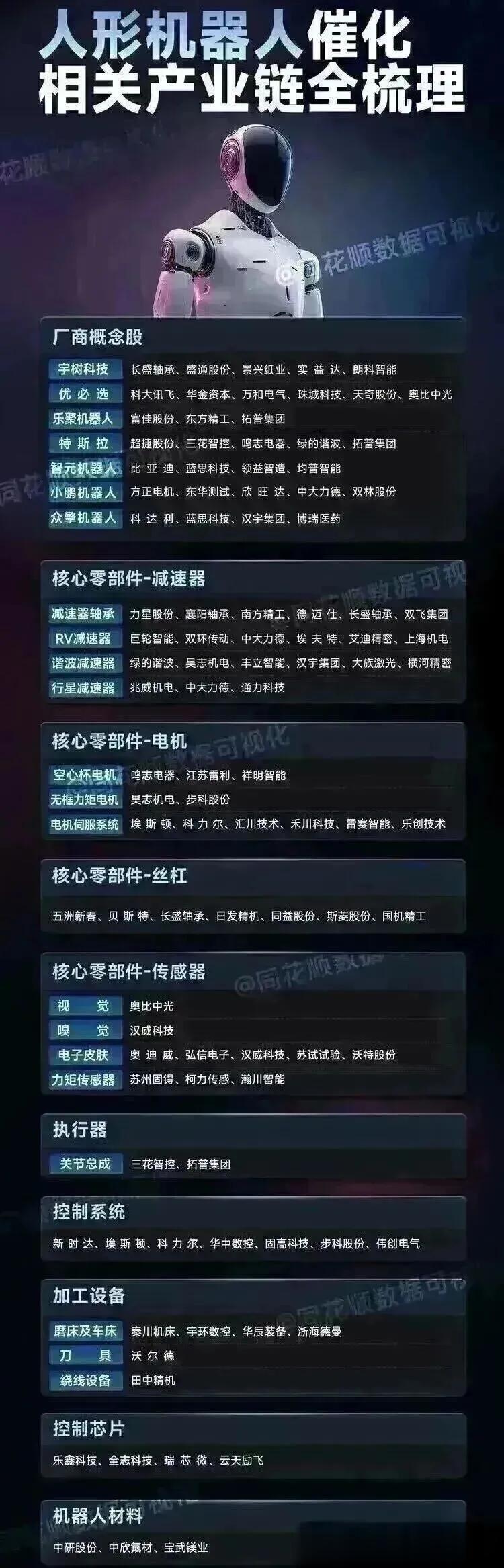 ·相关投资逻辑:宇树链的投资逻辑除常规核心供应商投资机会外,还可重点关注宇树潜在投资者对应的上市公司的投资增益机会。此前港股首城因管理的基金持有宇树科技一定比例股权,在春节期间港股开盘首日,与明确上春晚的越江一同实现股价正向表现。当前宇树前五大客户占比有限,且供应商策略较为分散,因此挖掘投资方相关标的是宇树链值得重点关注的投资方向。全文摘要