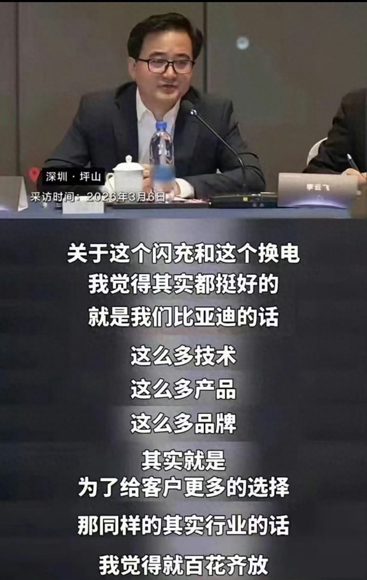 比亚迪李云飞 怎么看闪充和换电?