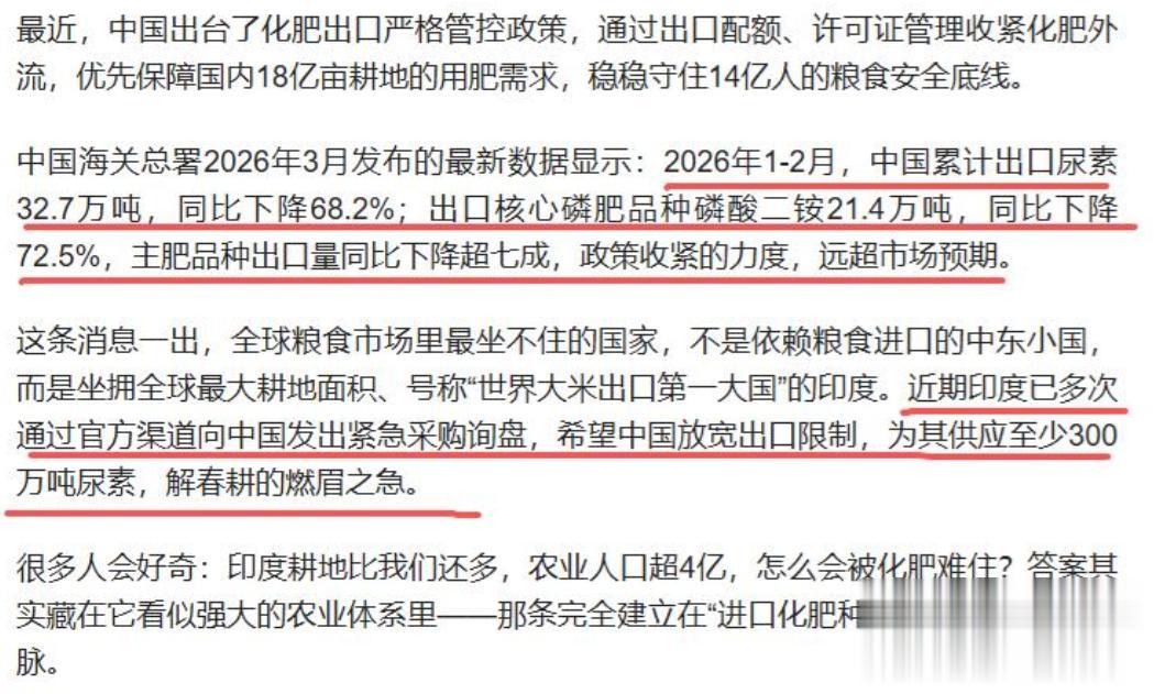 印度政府迅速通过外交渠道,向中国提出紧急请求。希望中方临时放宽尿素出口配额,优先保障印度春耕化肥供应。