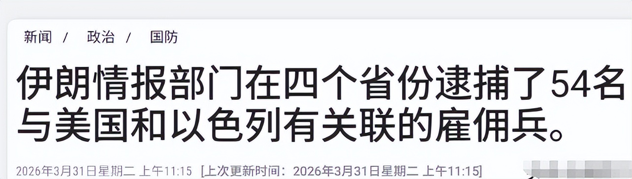 伊朗情报部门的行动速度快得让人意外,直接给美以的斩首计划来了个“釜底抽薪”。3月31日当天,伊朗情报部门在全国四个省份同时展开行动,一举逮捕了54名与美国和以色列有关联的雇佣兵,而且这54个人没一个漏网,全被全歼,彻底粉碎了美以的阴谋。