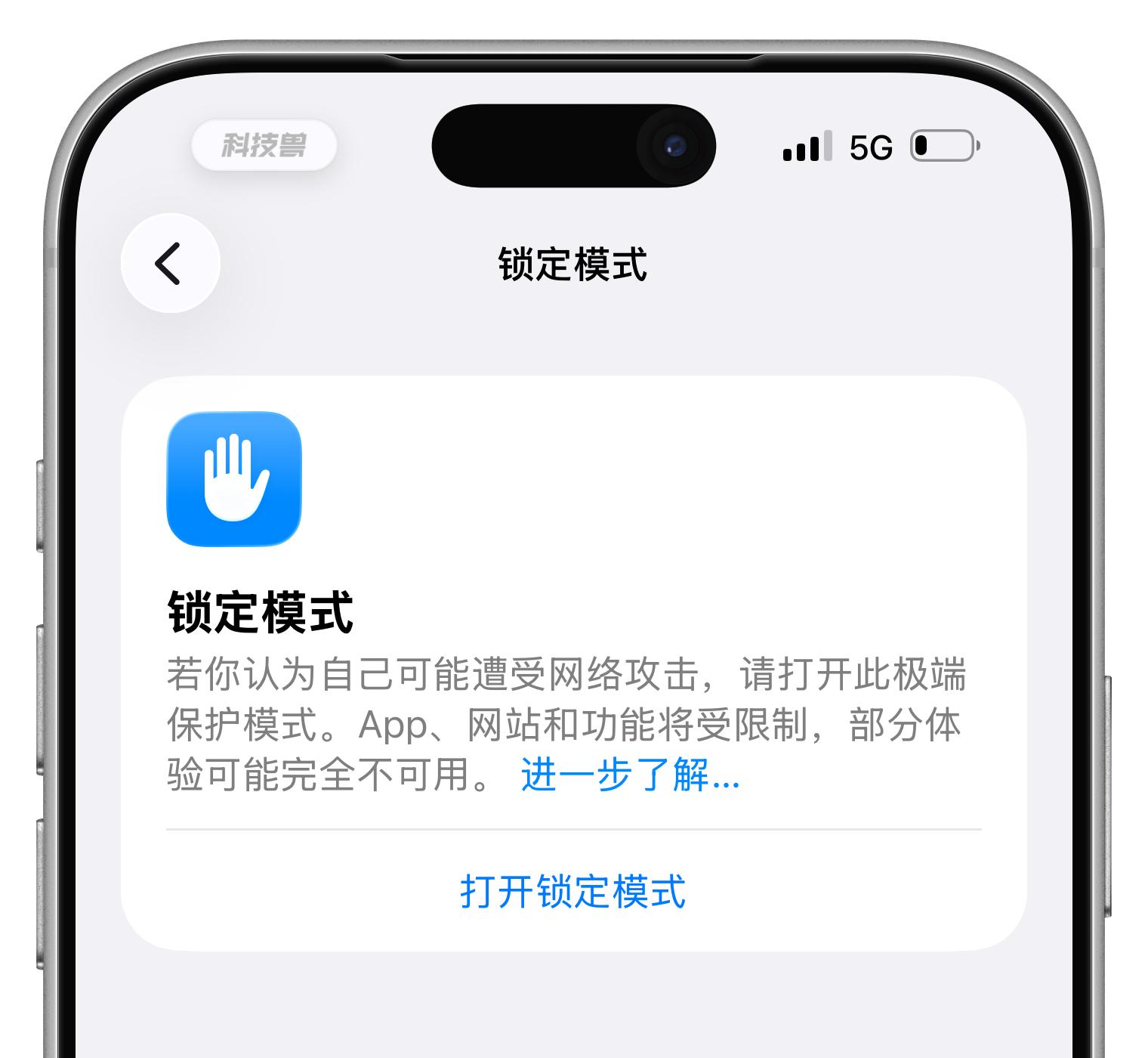 对于无法升级系统的设备,也可以考虑开启「锁定模式」(iOS 16 及以上提供,仅建议高风险人群使用),以防御恶意网页攻击。