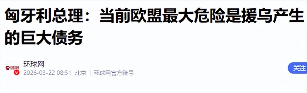 2.2026-03-22《匈牙利总理:当前欧盟最大危险是援乌产生的巨大债务》-环球网