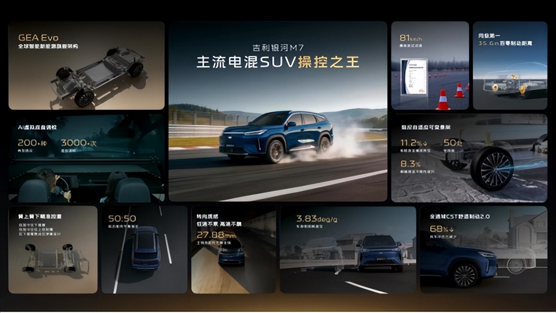 驾控层面,银河M7的表现同样亮眼,81km/h的麋鹿测试成绩拿下同级最快,堪称主流电混SUV中的操控实力派。依托专业调校与硬核配置,该车既保证了极限状态下的车身稳定性与可控性,又兼顾了家用所需的舒适性,打破了家用SUV重舒适轻操控的固有印象。搭配博世ONEBOX高度集成制动系统,实现35.6m百公里制动距离同级最短,再加上AES自动紧急避让最高时速130km/h同级最高的安全配置,让驾控不仅有乐趣,更有满满的安全感。