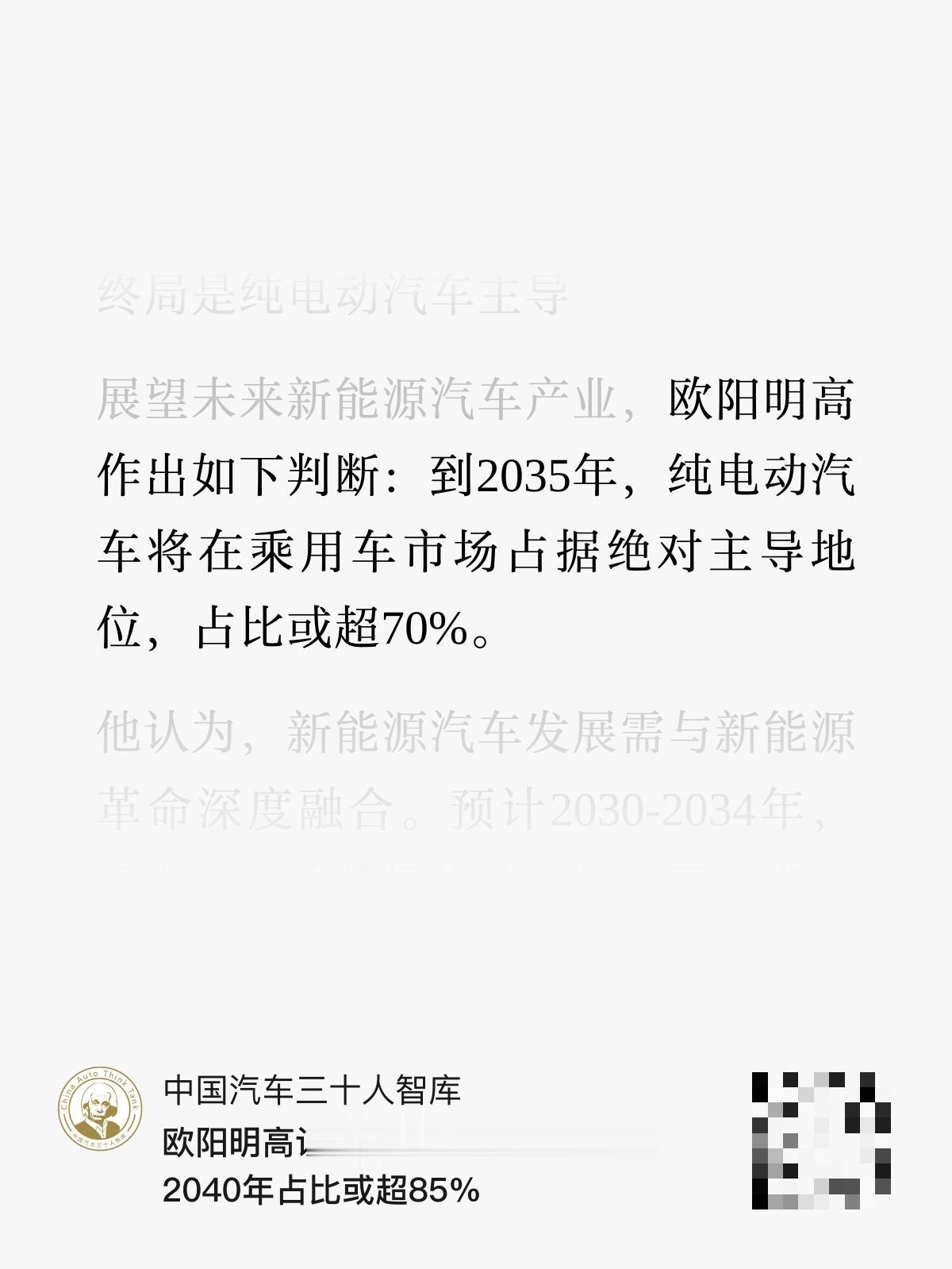 欧阳明高对未来的判断更为长远:“到2035年,纯电动汽车将在乘用车市场占据绝对主导地位,占比或超过70%。”在他看来,纯电驱动新能源汽车的优势将越来越突出,2026年将开启新一轮创新引领的高质量发展周期。
