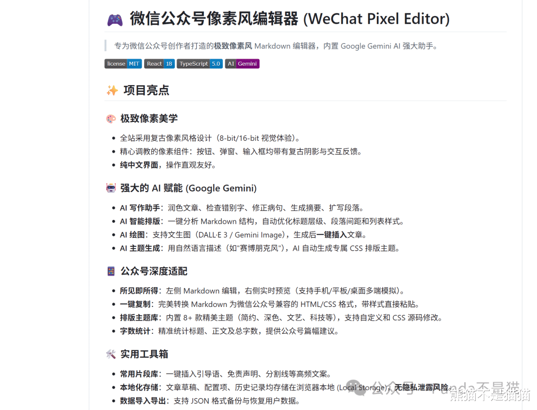 与其直接修改之前的项目,不如直接造一个新的,前不久我又整了个新项目——微信公众号编辑器,直接部署在了海康的R1上。(开源地址:https://github.com/Panda-995/wechat-editor)