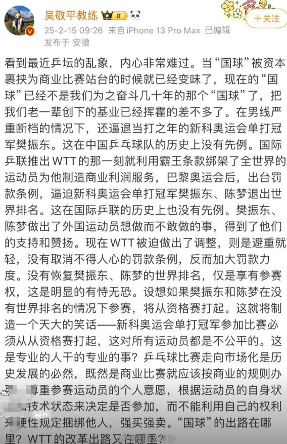 “同意”——这两个字耐人寻味。是挽留无果后的体面放手,还是早已心照不宣的默契?没人知道答案。但有一点是明确的:樊振东已经确定不会参加近期的世乒赛,回归国家队的苗头,暂时看不见。