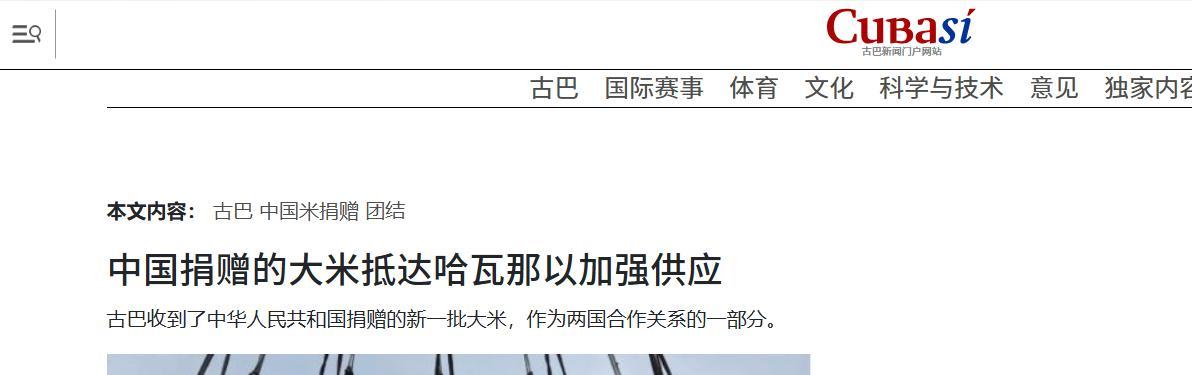2024年3月,中方心系古巴民生,果断决定向其提供紧急粮食援助,4月,408吨大米通过空运迅速送达,解了古巴的燃眉之急;6月起,又以海运方式分批交付。