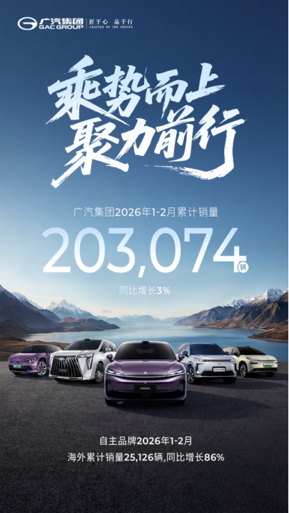 当其他车企还在为短期市场表现焦头烂额时,广汽集团已悄然迈入了全新的发展阶段。2026年初,广汽凭借20.31万辆的销量成绩稳住了基本盘,同时自主品牌的海外业务实现了86%的惊人增长。然而,真正引人注目的是其在科技创新领域的突破性进展:智能机器人产业独立发展、飞行汽车项目稳步推进,以及全新高端品牌启境GT7的问世。作为华为乾崑首次全栈赋能大湾区车企的成果,启境GT7不仅是一款新车,更是广汽与华为技术深度融合的里程碑。