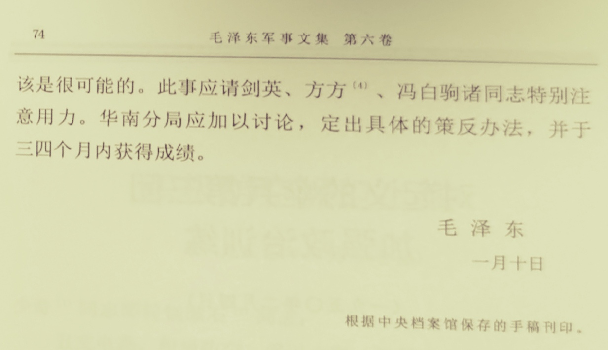 海南岛战役之前,毛泽东致林彪的第三封指示电(由中央转,二)