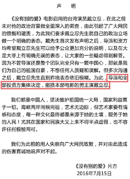 这部电影原本的男主角戴立忍被爆出了立场问题。