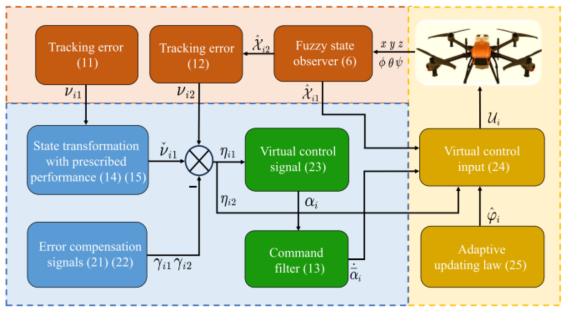 苏州科技大学和南京理工大学团队这次提出的方案同时解决了这两个问题。他们设计了一个模糊状态观测器来估计无人机的不可测状态,同时引入了一个预定时间性能函数——可以事先设定好误差收敛的时间,不管初始状态如何,都能保证在这个时间内误差收敛到指定范围内。