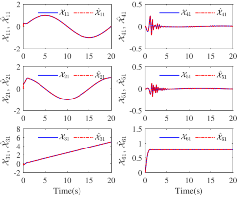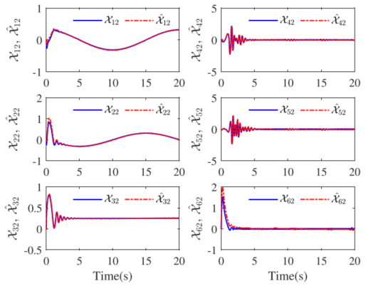 大部分预定时间控制研究假设状态全可测,这在无人机上不现实——角速度、部分位置信息往往需要观测。他们把模糊逻辑系统和状态观测器结合,用可测的输出量(位置和姿态角)估计不可测的速度量,再基于估计值设计控制器。这是一个完整的“估计-控制”框架。