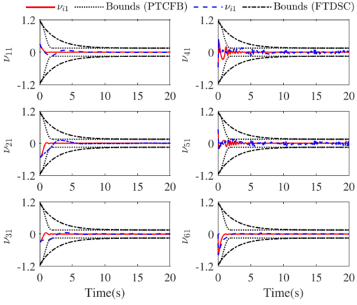 传统预设性能控制用指数衰减函数,收敛时间趋向无穷大。他们改用了一个预定时间性能函数: