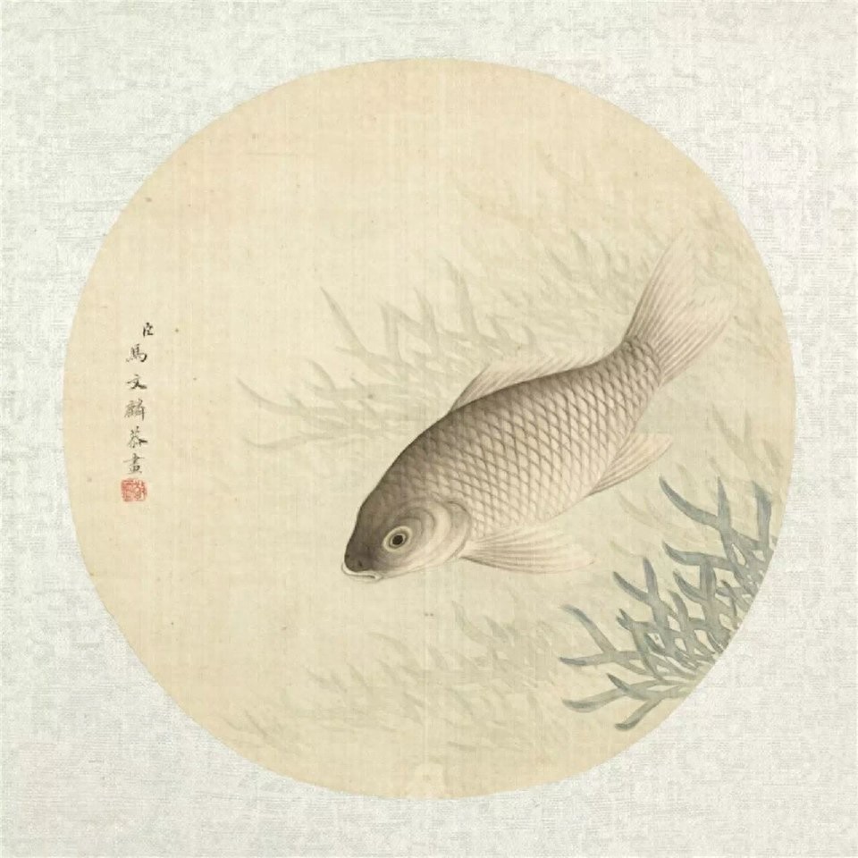 - 虚实是"水的形状"。水草密的地方,墨色稍浓,像水浅能见底;水草疏的地方,全留空白,却让人觉得水很深,鱼游进去就不见了。这种"不画水却处处是水"的本事,比画浪涛更显"水的魂"——马文麟没画水面,却用鱼的姿态、草的方向,告诉我们水往哪流、风从哪来。