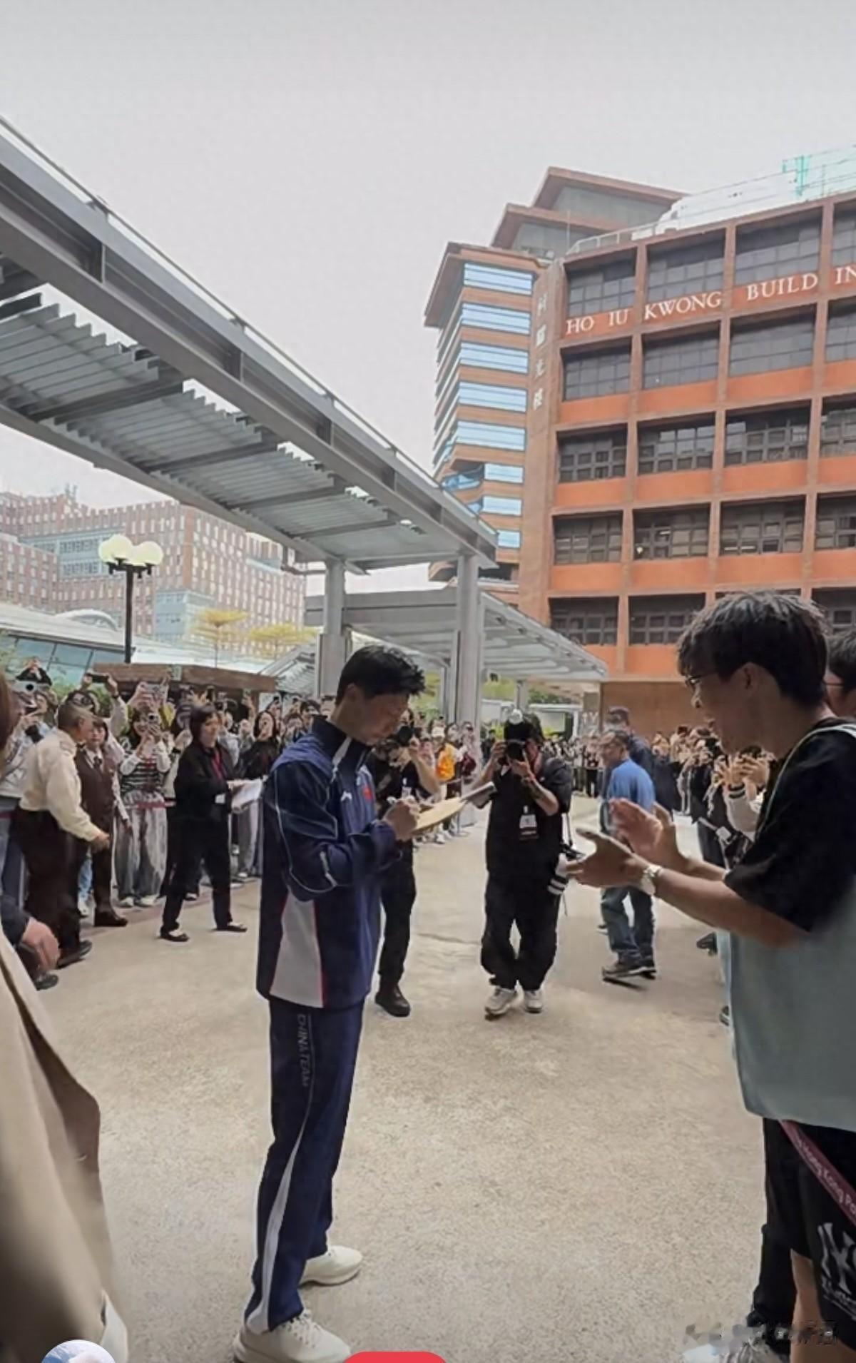 今天上午,看到马龙现身香港理工大学,他这是去香港参加交流活动了,参加活动的马龙穿着中国乒乓球队的新队服,他往学校进的时候,还随机拿过来一个球拍给签名了。