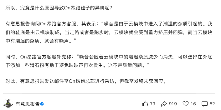 独特的CloudTec结构缓震技术,也让昂跑获得了“中产足力健”的昵称,但此前也一度陷入“异响”疑云。