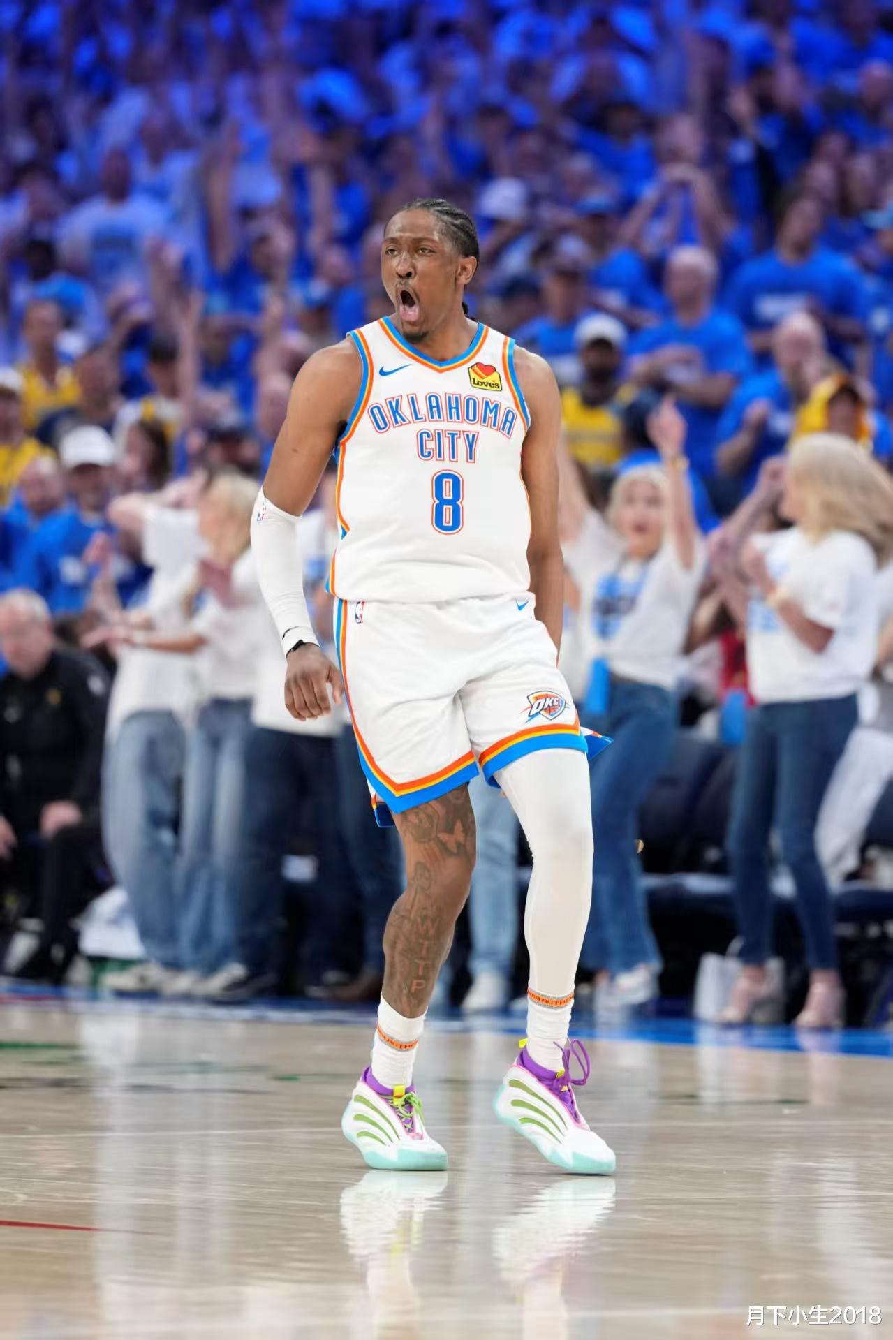 本场比赛雷霆队除了头号球星亚历山大继续稳定的输出外,他们拿下31分10助攻和4次封盖,球队二当家杰伦威廉姆斯神勇发挥,全场砍下职业生涯新高的40分,帮助球队屡屡在关键时刻稳住局势。而三号球星霍姆格伦本场在进攻端手感不佳,15投仅4中,只拿到9分,但防守端依旧在线,送出3次封盖;而雷霆队也凭借着新雷霆三少的出色发挥拿下了天王山之战,只要再赢一场,他们就将创造历史拿下队史上的首座总冠军奖杯。