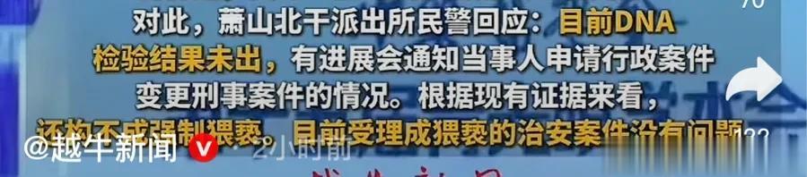 警方表示,目前现有证据暂未构成刑事上的强制猥亵罪,后续还要等待DNA检测结果和更多证据,不排除转为刑事案件的可能。