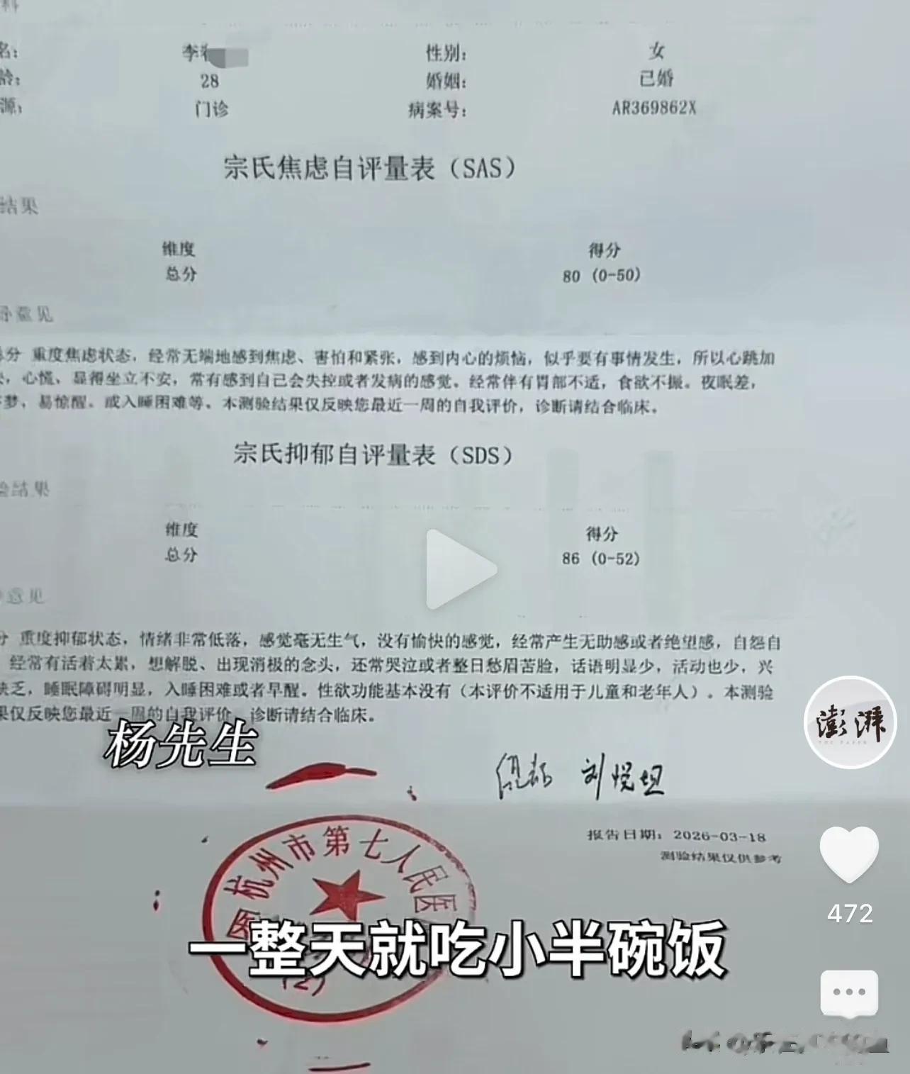林然本就承受着巨大的心理压力,面对这样的职场和生活双重施压,更是濒临崩溃,甚至被医院诊断出重度抑郁,连正常工作和生活都难以维持。