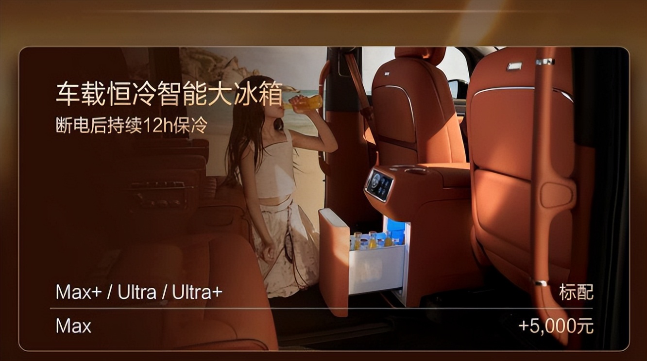 Max+版 43.98万起,稳健出行进阶款,四驱更稳健。升级双电机四驱系统,抓地力更强,适配北方雨雪湿滑路面与高速长途出行场景;无需额外选装,直接标配车载冰箱,长途出行随时能享冰饮,适合追求稳健驾控、看重出行安全性的用户。