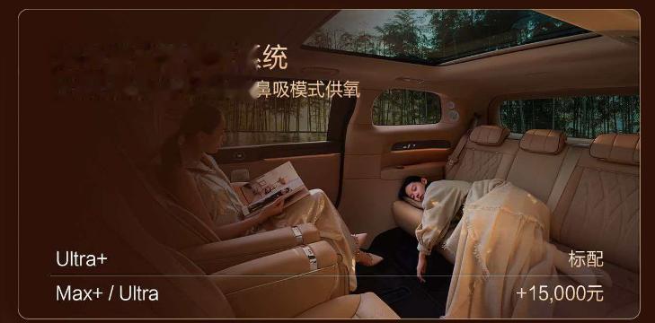 Ultra版 46.98万起,商务家用全能款,兼顾双场景。除标配车载冰箱外,新增森林级制氧系统(三重过滤净化+弥散供氧模式),为后排打造清新舒适的乘车环境;开放智能隐私调光玻璃等进阶选装项,既能满足家庭出行的舒适需求,又能适配商务接待的体面感,是多场景用户的全能之选。