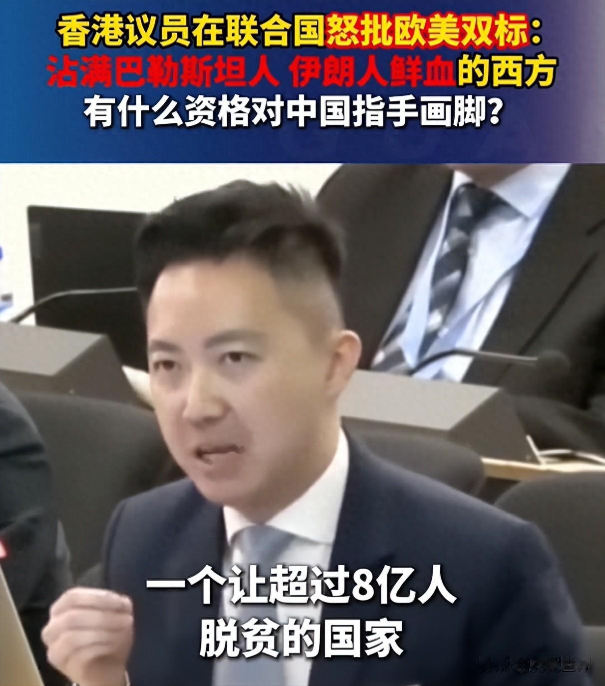 长期以来,部分欧美国家将人权包装成干涉他国内政的“武器”,把人权议题异化为谋取地缘政治私利的筹码,奉行赤裸裸的双重标准。他们对自身堆积如山的人权劣迹视而不见、避而不谈,却动辄以“人权卫士”自居,对中国的发展道路、对香港的繁荣稳定指手画脚、肆意抹黑。李梓敬的发言,直击这一虚伪本质,用一连串振聋发聩的灵魂质问,撕下了这些国家的伪装:自身深陷丑闻、人权记录劣迹斑斑的美国,有何资格对实现8亿人脱贫、创造人类减贫奇迹的中国指手画脚?为管控网络言论逮捕上万民众的英国,有何道德权威对中国公民的自由说三道四?高喊人权口号,却对加沙地区的人道主义灾难冷眼旁观、纵容冲突升级,双手沾染无辜民众鲜血的北约,又有何颜面定义世间正义?