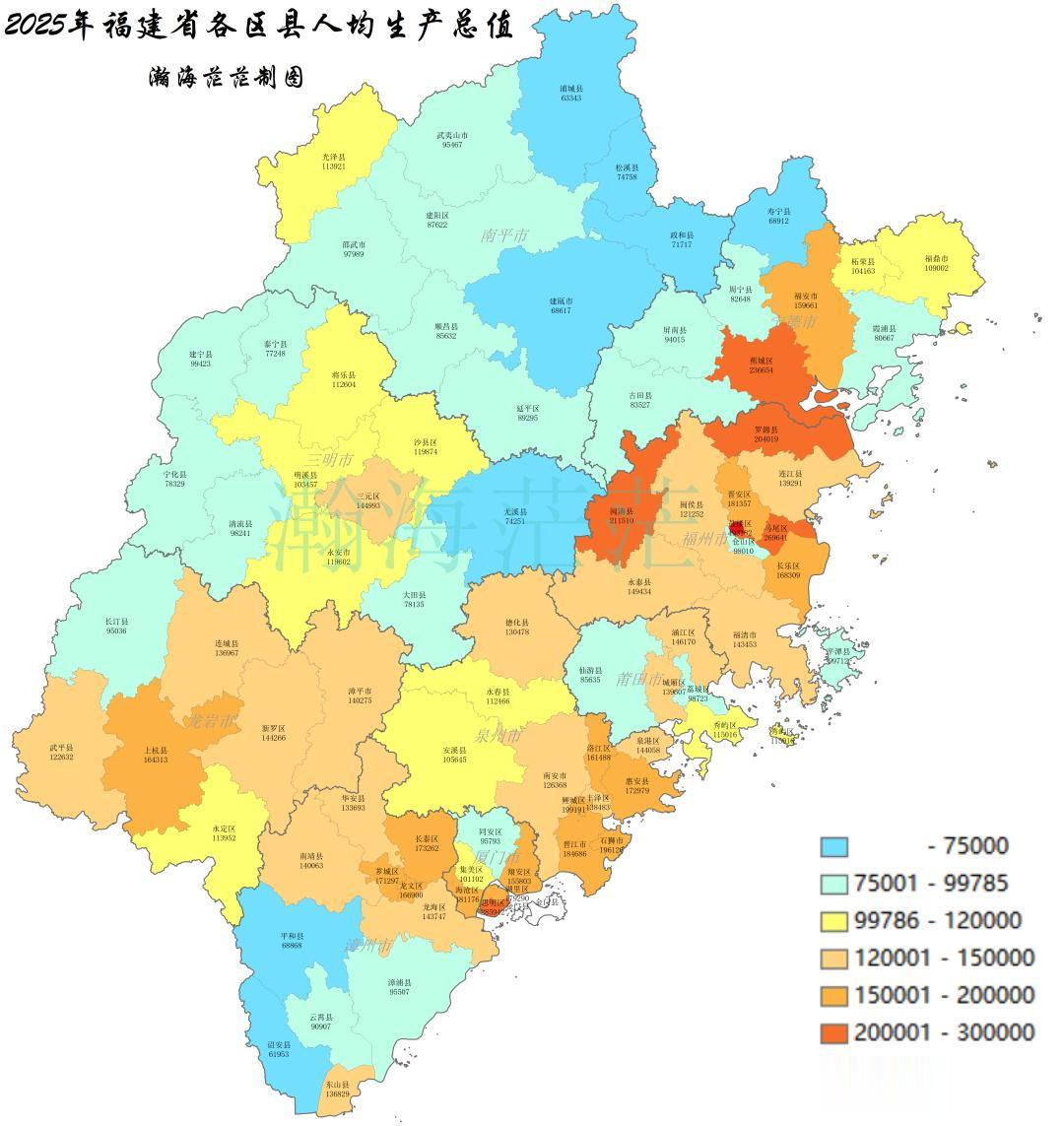 2025面福建省各地市,区县生产总值和人均生产总值如下: