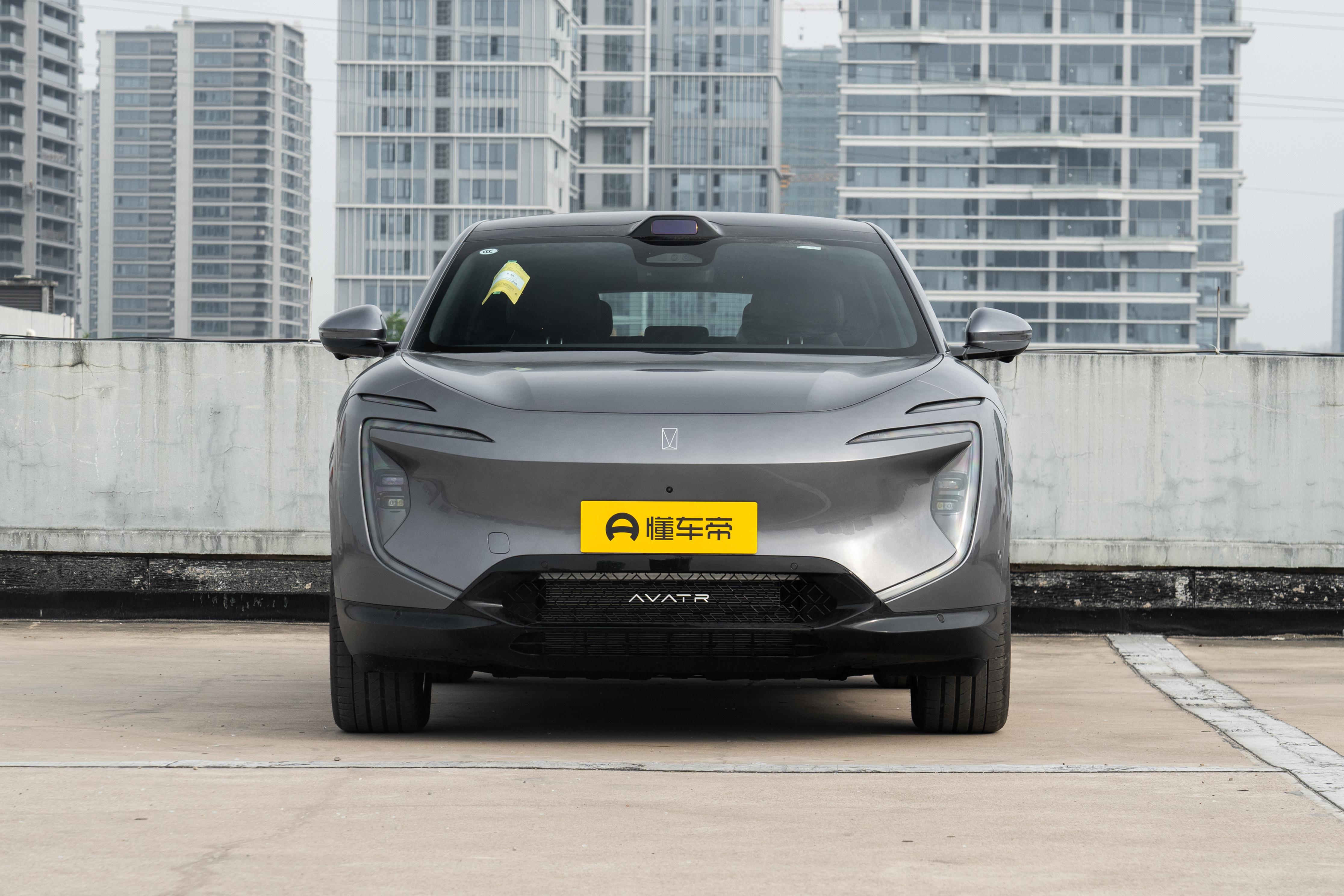 阿维塔 07的整体造型采用的是未来美学原创设计,前脸配备的是碟翼式的大包围造型,造就独树一帜的超高辨识度,全LED星旅式灯组发光均匀柔和,不会出现断点的问题,提升了一定的高级感,在前挡风玻璃和引擎盖的中间还带有一块HALO交互屏,由10500颗LED灯珠组成,可以自定义交互灯语,具有一定的可玩性。